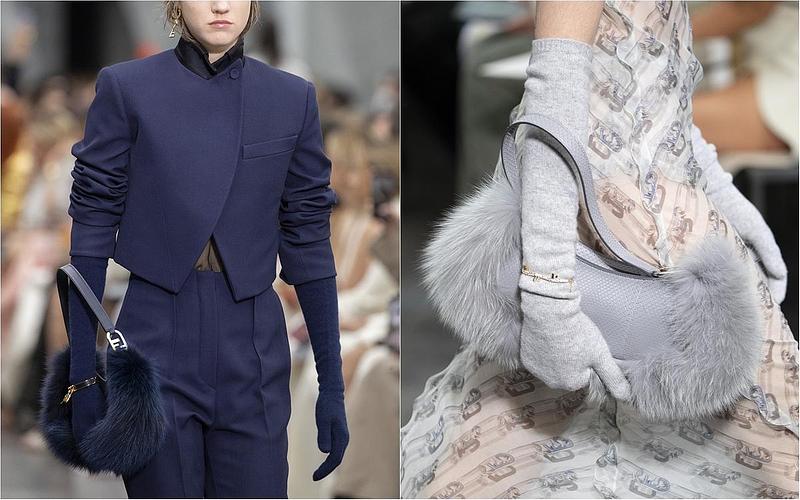FENDI 藍黑色狐狸毛O' Lock Swing包款 建議售價NT$86,000 (右下)