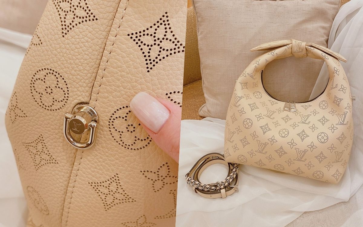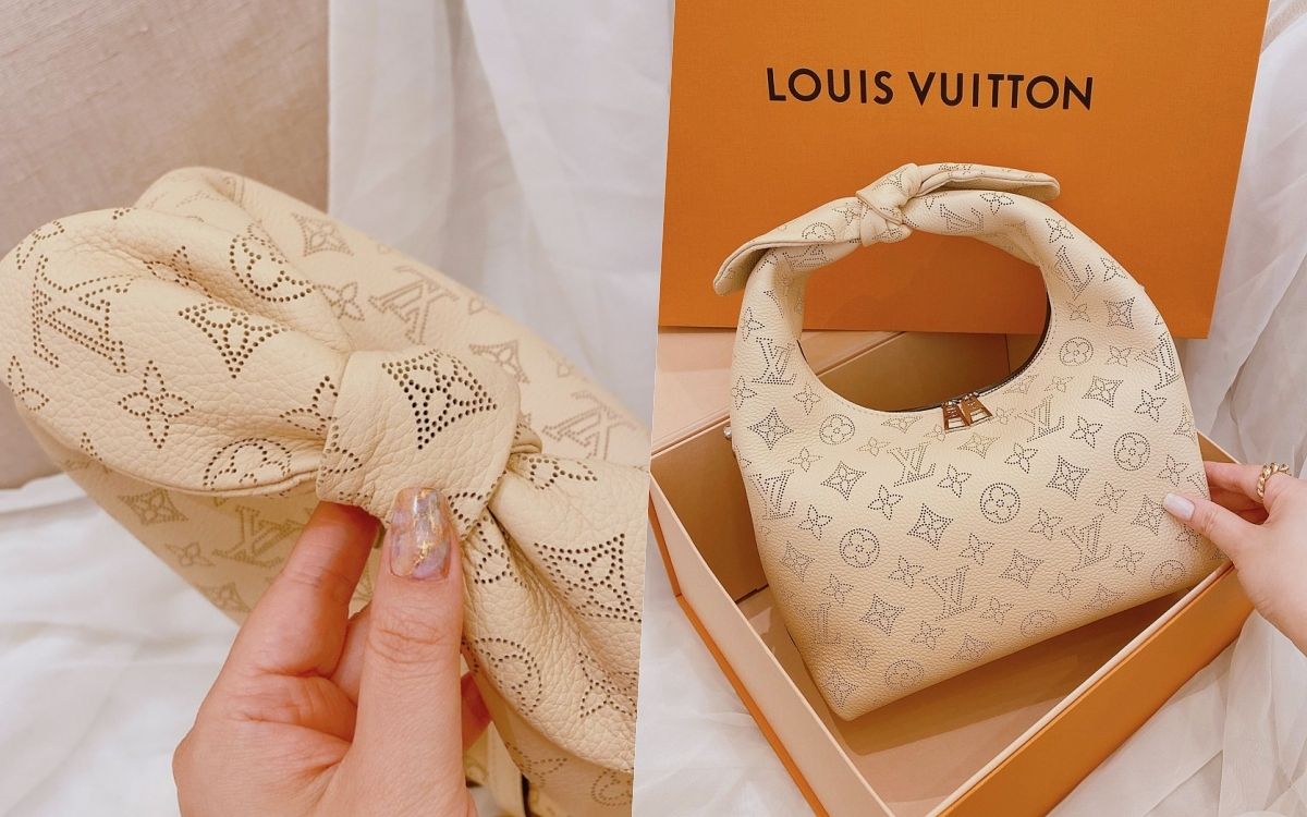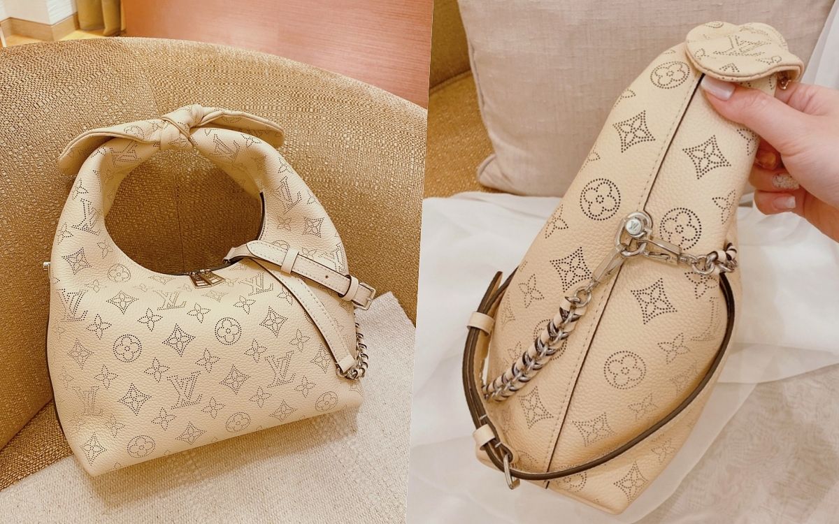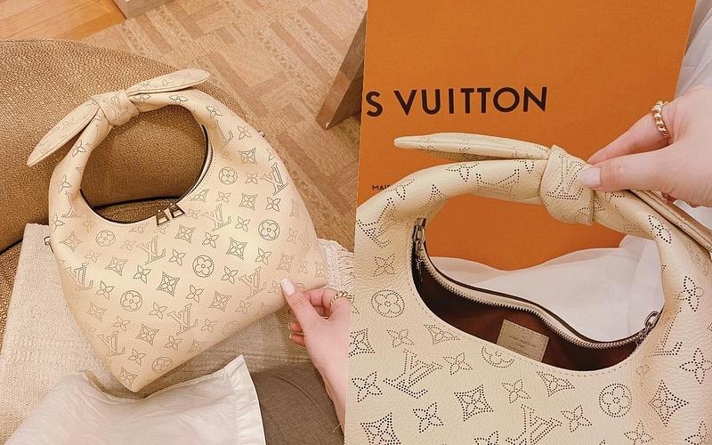 包包整體外型以便當盒包的靈感去設計輪廓,既澎潤又方正的衝突感,加上紐結手柄提把的特殊造型,超級亮眼、令人印象深刻!同時採用品牌標誌性的Mahina小牛皮面料製造,綴有Monogram打孔通花圖案,皮革的手感柔軟但具有挺立感,揹上身能貼合身體曲線,單獨放著也不會失去時尚包型。
