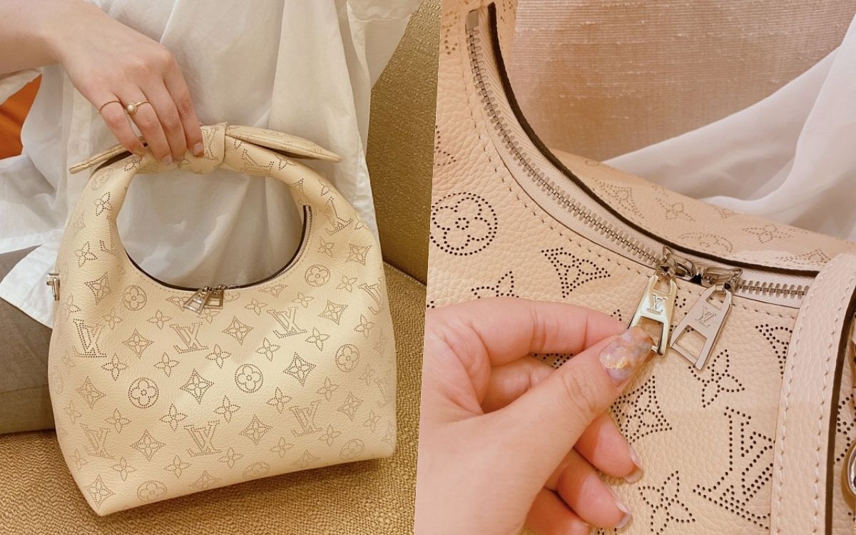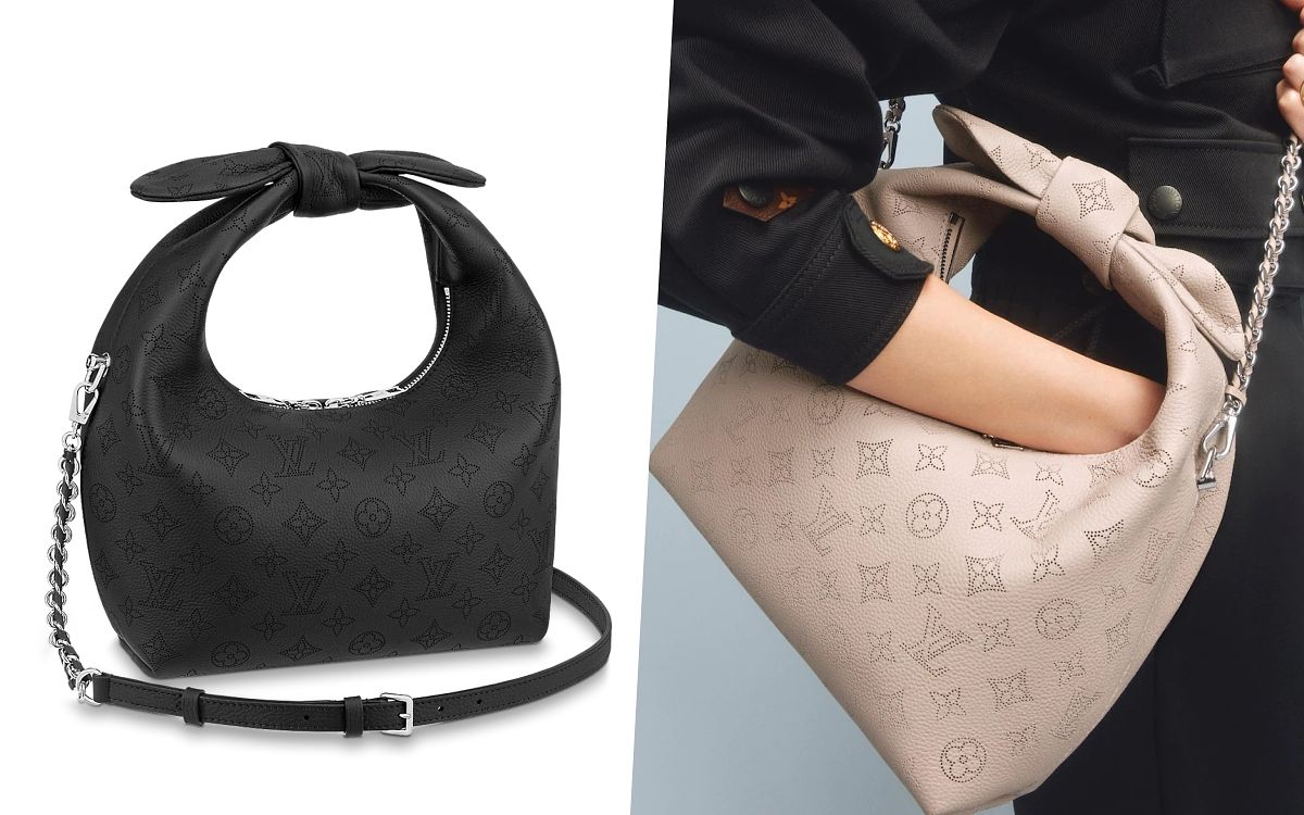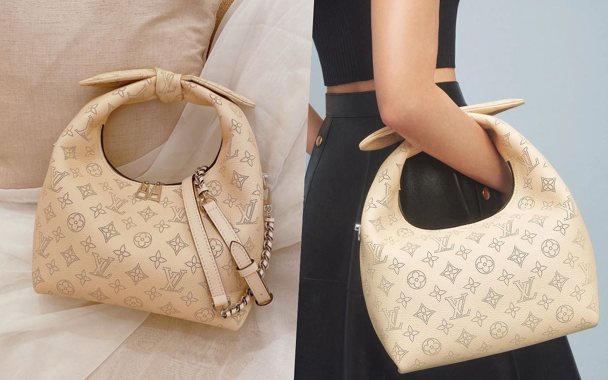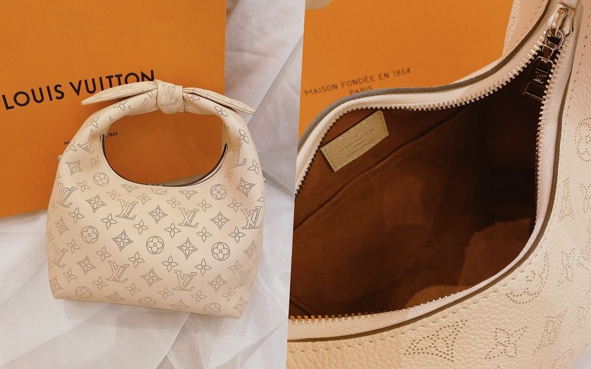 包包整體外型以便當盒包的靈感去設計輪廓,既澎潤又方正的衝突感,加上紐結手柄提把的特殊造型,超級亮眼、令人印象深刻!同時採用品牌標誌性的Mahina小牛皮面料製造,綴有Monogram打孔通花圖案,皮革的手感柔軟但具有挺立感,揹上身能貼合身體曲線,單獨放著也不會失去時尚包型。