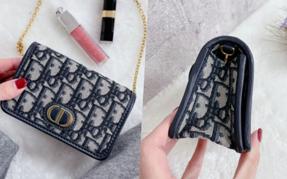 這款造型極為精巧的30 Montaigne Nano小袋,以品牌經典Dior Oblique藍色緹花帆布,創造出低調華麗的奢華風格,翻蓋的「CD」標誌設計更彰顯出Dior的自信前衛,包款內部以單格夾層可收納卡片、airpods及彩妝小物,同時更配有腰帶扣環與可拆卸式鏈帶,搭配上擁有更高的變化與豐富層次。