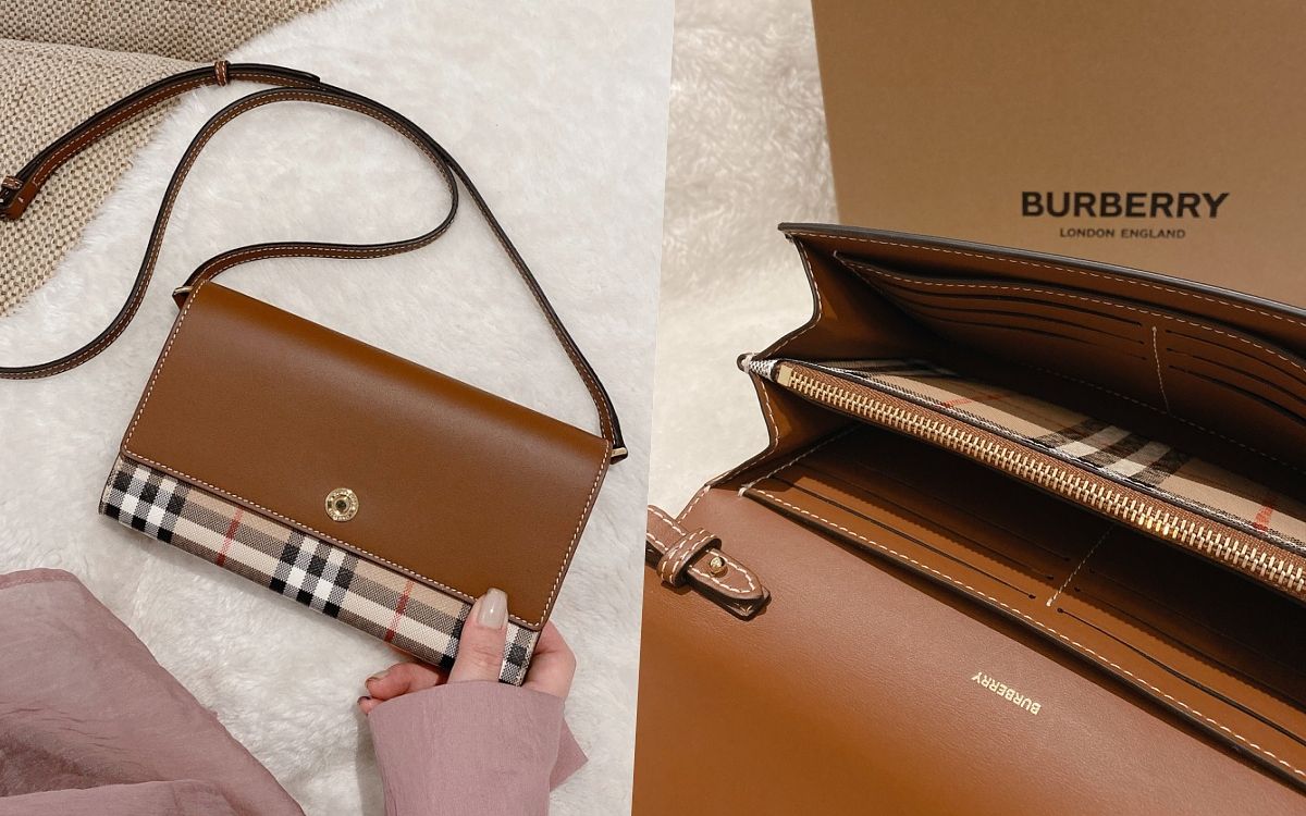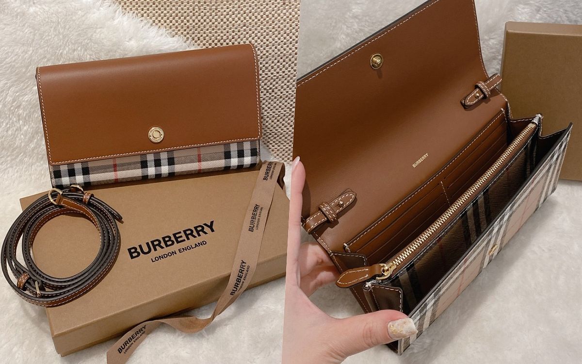 6.BURBERRY 格紋拼皮革錢夾(含可拆式背帶) NT$30,500