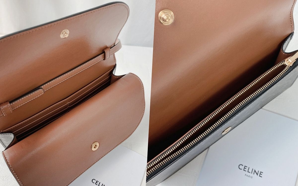 店櫃上隱藏爆賣款Triomphe Strap包,將鍊條Chain更換成皮革背帶Strap,更加簡約百搭,且容量比想像的能裝太多,包內主要有兩層摺檔式內格空間,還有一拉鍊夾層、八個卡槽,不只能放下手機,還能收納各種隨身小物,一包還有多種揹法,價格只有四萬初,真的很推薦從這款入門CELINE!