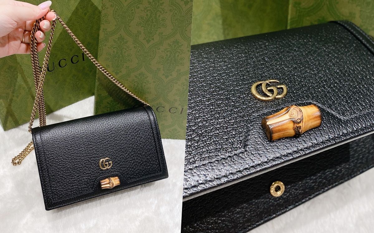 身為Gucci的愛好者絕對要擁有一顆竹節包,此款竹節Diana WOC包向品牌傳統的核心材料致敬,以竹製封扣做為最獨特亮眼的重點,配有迷你的Gucci 字母組合配件和精緻的鍊式肩帶,既復古華麗,又不失雅致的高端氣質,內層以大單格層與兩個卡槽提供完美收納空間。