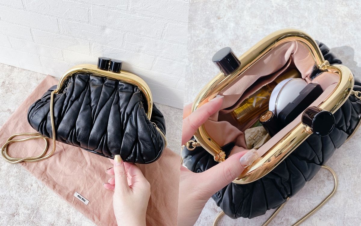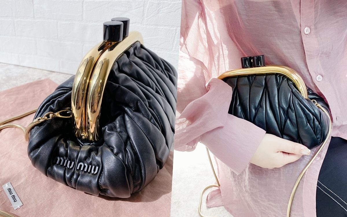 總能完美融合俏皮可愛與華麗奢華風格,且帶出女性迷人風貌的Miu Miu,最新Miu Belle納帕軟皮手袋以經典Matelassé圖案及彈簧鉸袋扣,將充滿歐式復古風情的錢包款式創新再造,融合品牌的特色與標誌,整體高貴優雅造型散發柔美且復古韻味、流露時尚質感,另外鏈條肩帶及塗漆金屬標誌也為手袋錦上添花一筆,無論當作手拿包或加上鏈帶揹上身都極具特色。