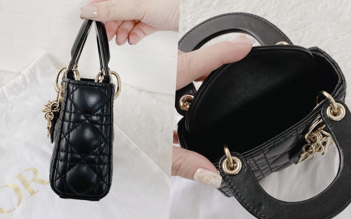 DIOR極具代表性的Lady Dior 手袋體現了品牌對高貴典雅及美麗的演繹,微型尺寸將成熟華麗的傳統印象刷淡,更加俏麗且活潑,不只擁有十足的收納力,及可調整長短及可拆卸的肩帶,更能完美搭配各種穿搭風格與場合需求!包包整體以黑色羊皮製作,飾有經典Cannage藤格紋圖案縫線,同時綴以「D.I.O.R.」吊飾,令這款品牌經典作品更添一絲年輕神采。