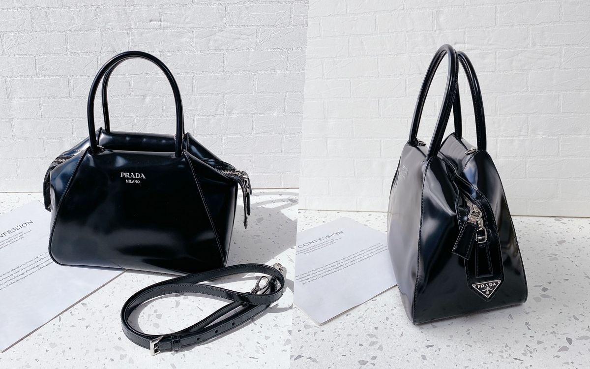 PRADA這款在2022年秋冬時裝展亮相的全新手袋對線條重新改造,以獨特、立體且俐落的包型輪廓使人印象深刻,幾何線條與空間感的設計,搭配Supernova拋光皮革的獨特光澤感,彰顯了前衛現代的時髦造型,同時帶有女性優雅的姿態,令手袋在所有黑色精品包款中脫穎而出,另外包款收納空間也非常寬廣,同時配有一條可拆可調節式背帶能夠自由變換揹法。