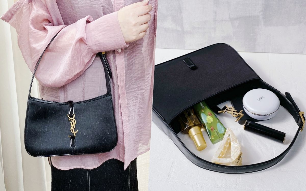 隨著BLACKPINK的Rosé一次次完美演繹YSL的包款及服裝,LE 5 À 7 hobo bag也成為品牌最新經典、搶手腋下包款,最新以絲質緞面面料打造的包面散發著細膩且高級的低調光澤,側邊、包底及背帶則使用漆皮皮革搭配,在典雅柔美的氣質中注入一絲現代玩味與潮流個性感,特別符合符合品牌視覺印象與精神,背帶也可調整長度,完全不用怕卡腋下、好揹又有型!