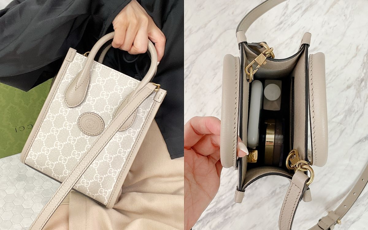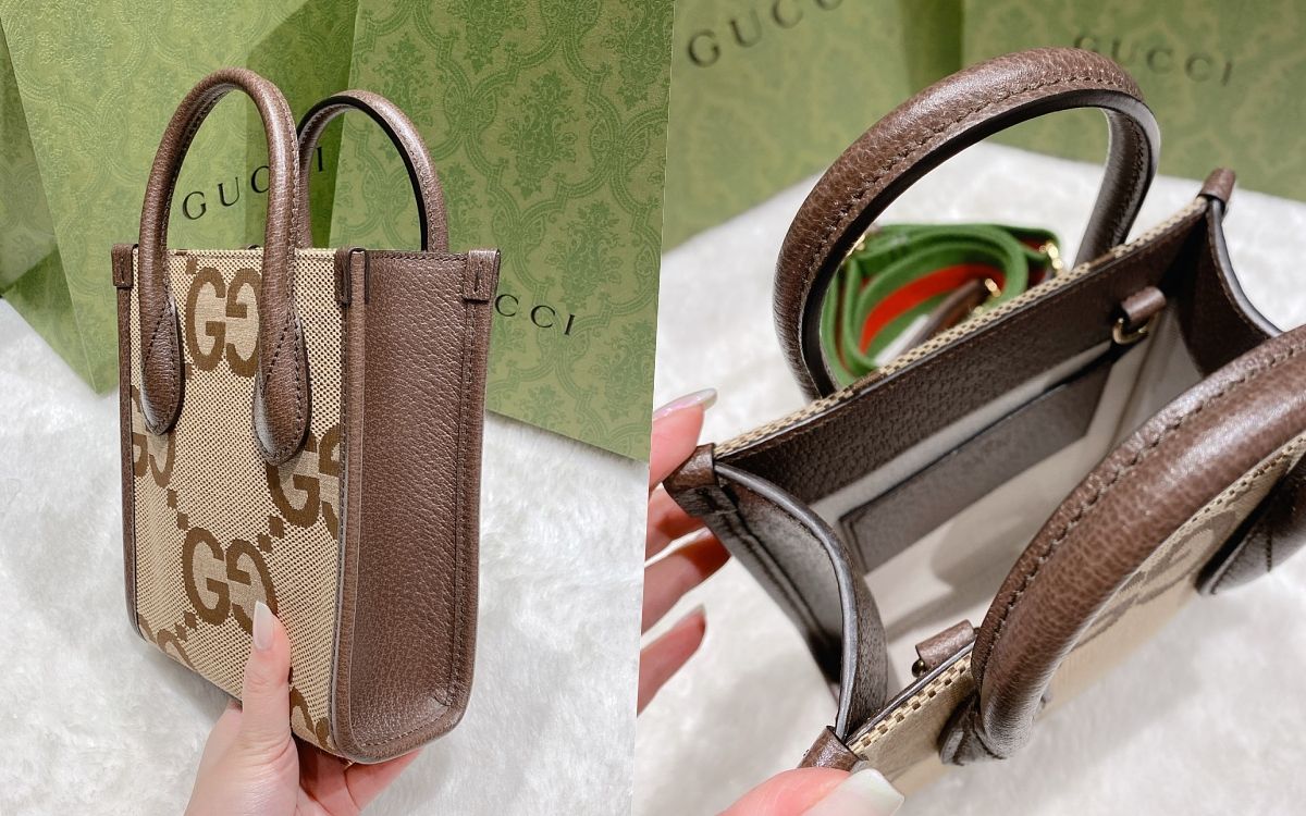 Gucci以放大版標誌性GG LOGO老花打造的迷你托特小包,實在太燒心可愛了~和經典GG老花的款式各具特色,前者為復古經典美學注入潮流變化與活潑新意,且搭配寬版織條背帶,後者保留品牌一貫的典雅、華麗古典氛圍,搭上皮革背帶,兩者包內空間都非常寬廣好收納,令人難以抉擇、都想打包結帳!