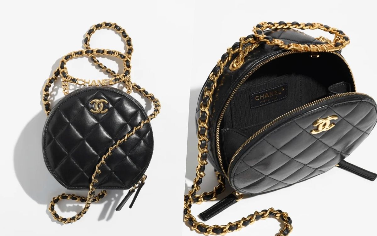 圓形設計太可愛!精緻的鍊帶設計悄悄劃上香奈兒標誌、CHANEL字樣妝點包款更為優雅知性。