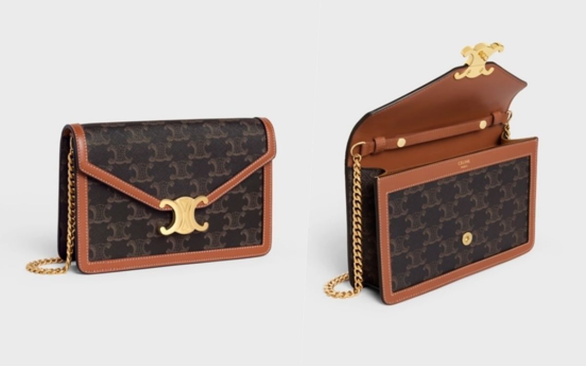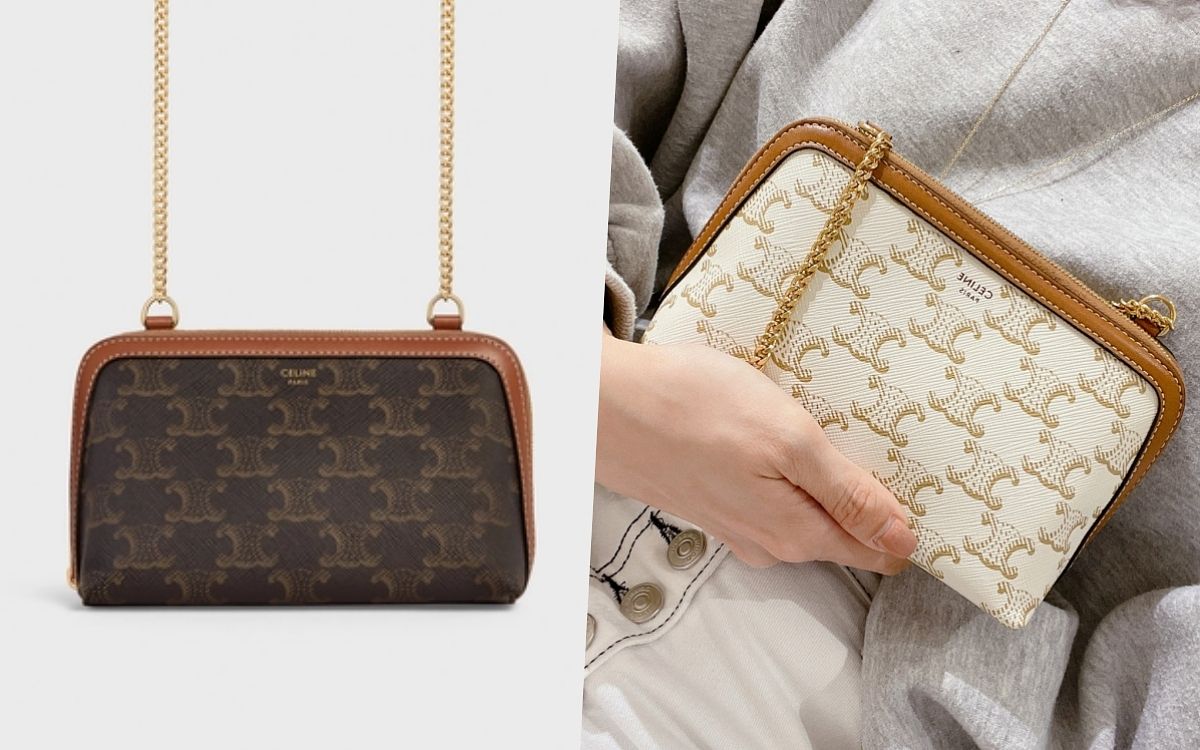 最新登場CELINE鏈帶錢包以信封包型搭配熱門凱旋門金屬標誌,並將TRIOMPHE老花帆布與皮革飾邊交疊出獨特的復古率性風格,隨著各大精品品牌包價格都在節節攀升之時,這顆代購有望以四萬多帶走,同時還擁有基本容量,實在太推薦入手!