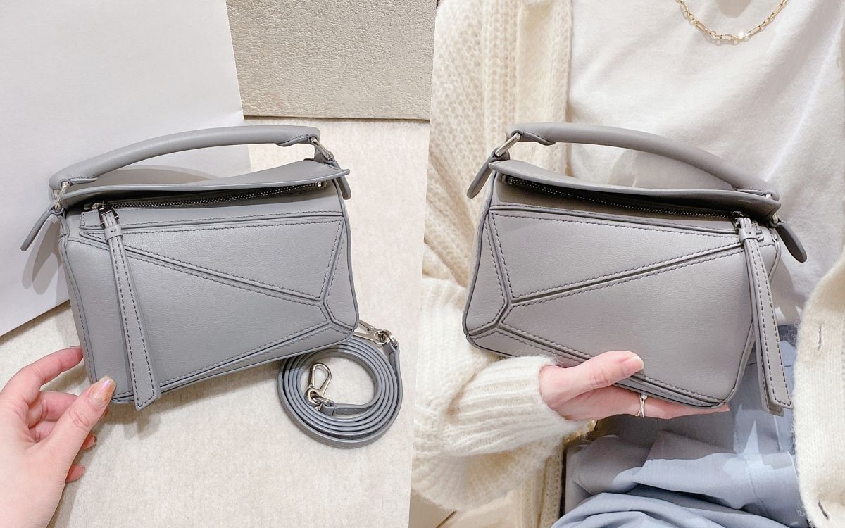 極受歡迎的LOEWE PUZZLE包最新色「奶油灰」太美了!迷霧般的淺灰帶點軟奶油的療癒感,既優雅又知性的高級質感真的無法不心動,且這顆迷你PUZZLE的容量更是滿分,無論手機、錢包、耳機、各式小物都能直接放好放滿,同時附有一條皮革細背帶,日常攜帶能隨意變換方式十分方便!