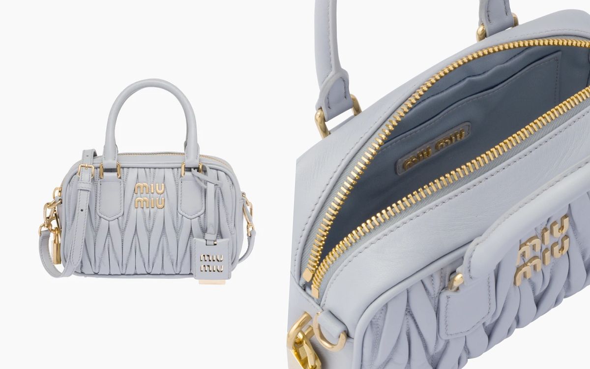 運用經典Matelassé圖案的包款已穩坐了MIUMIU銷售常勝軍寶座,柔軟細緻的手感與立體度完整呈現了品牌精湛工藝,小方包包型更是可愛又不失精緻優雅魅力,搭配上失車菊藍的獨特霧灰藍色將女性柔美、優雅知性的魅力展露無遺,無論手拎、手挽或扣上皮革細背帶側揹都獨具優雅的細緻氛圍。