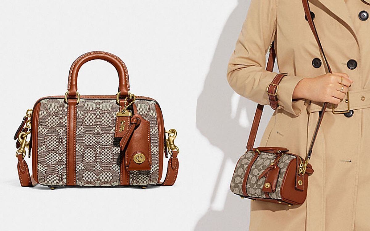 RUBY手袋具有經典的波士頓圓弧包型,以COACH經典SIGNATURE緹花面料打造而成,並以棕色皮革飾邊、於提把及背帶妝點,充分展現品牌最為人熟悉的老花印象,手袋具有數個多功能插槽能收納隨身物品,除了能以提把持用,也可搭配舒適的寬版斜背帶來斜背,符合小資女孩們日常各種需求。