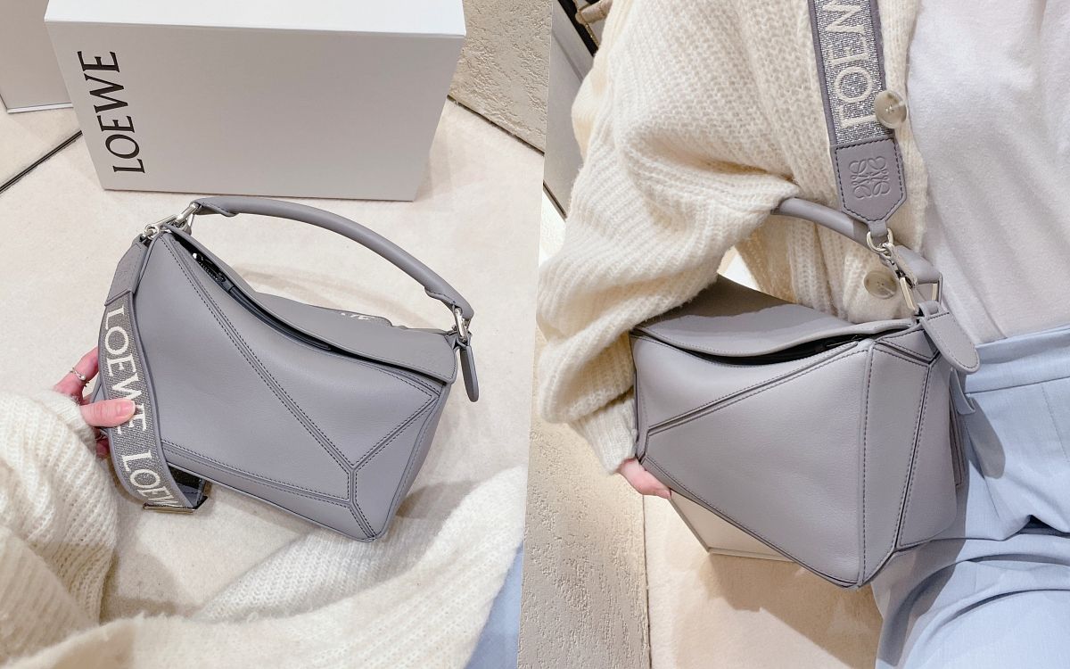 LOEWE的Puzzle包以俐落皮革拼貼,來詮釋型格出眾的獨特輪廓,包款有著令人著迷的多變姿態,手拎或肩揹各能呈現不同風格的時髦,寬版肩揹帶則讓整體氛圍巧妙畫龍點睛,容量超能裝這點也令人想不猶豫買單。