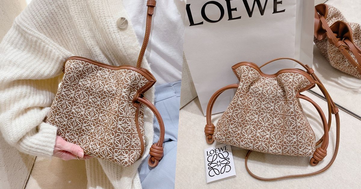 LOEWE入門選這顆!經典「緹花小水餃包」抽繩束口太可愛♥附肩揹帶、可放錢包手機容量超完美!