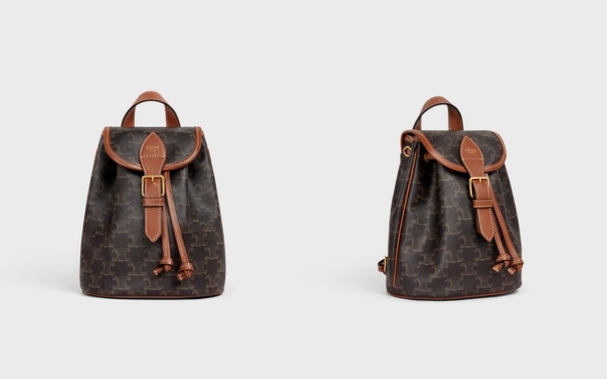 CELINE TRIOMPHE老花帆布的包款既俐落前衛又具復古氛圍,搭配棕色皮革的滾邊及包釦設計散發獨特時髦感,且後背包的線條輪廓與款式都屬於較優雅、正式的類別,很適合女生們精心打扮時搭配。