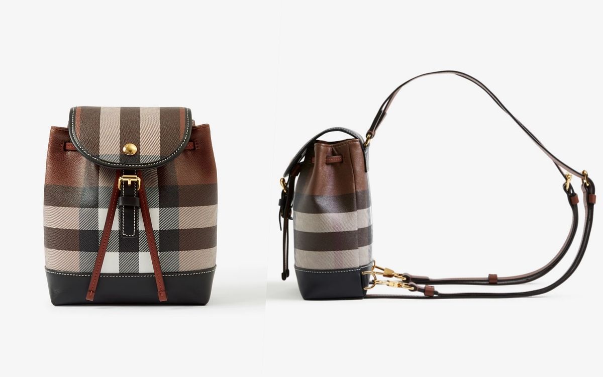 BURBERRY充滿英倫優雅質感的格紋圖案以咖棕色展現,在此款迷你皮革後背包上特別搶眼且獨特,使包款散發低調俐落的都會氣息,喜愛小包卻不想屈就容量的話,非常推薦入手這一款喔!
