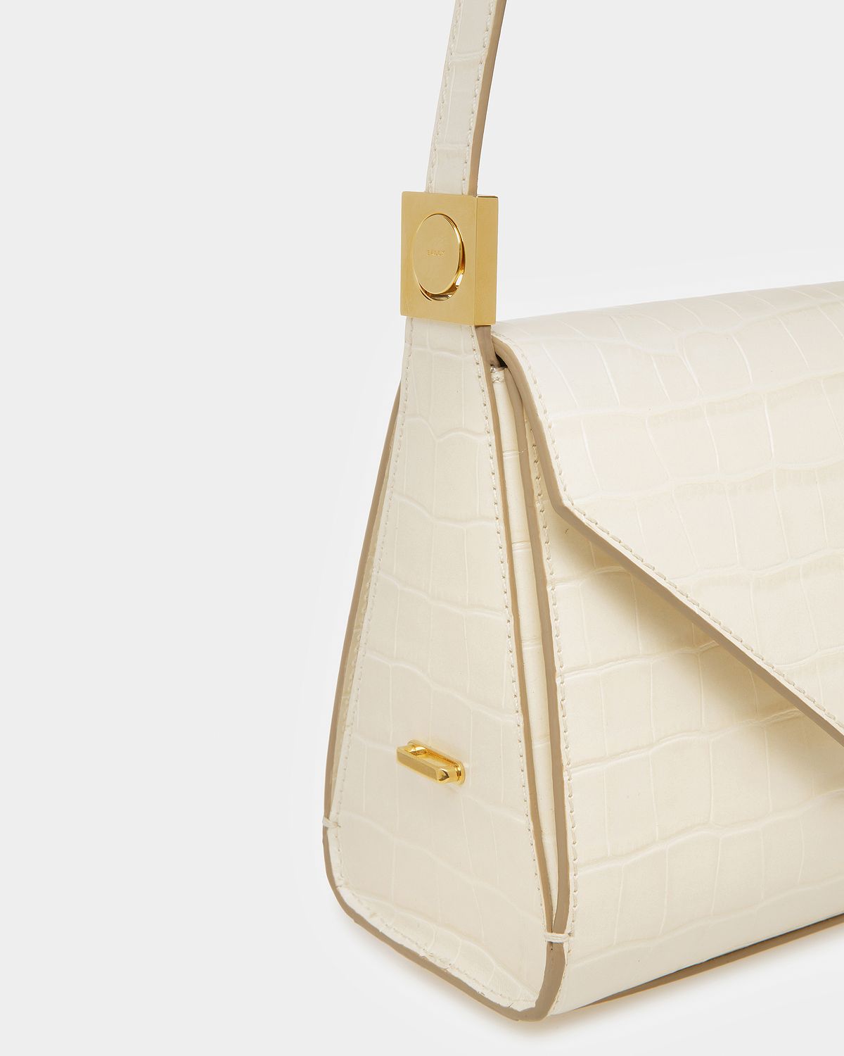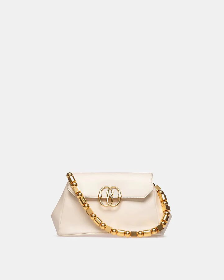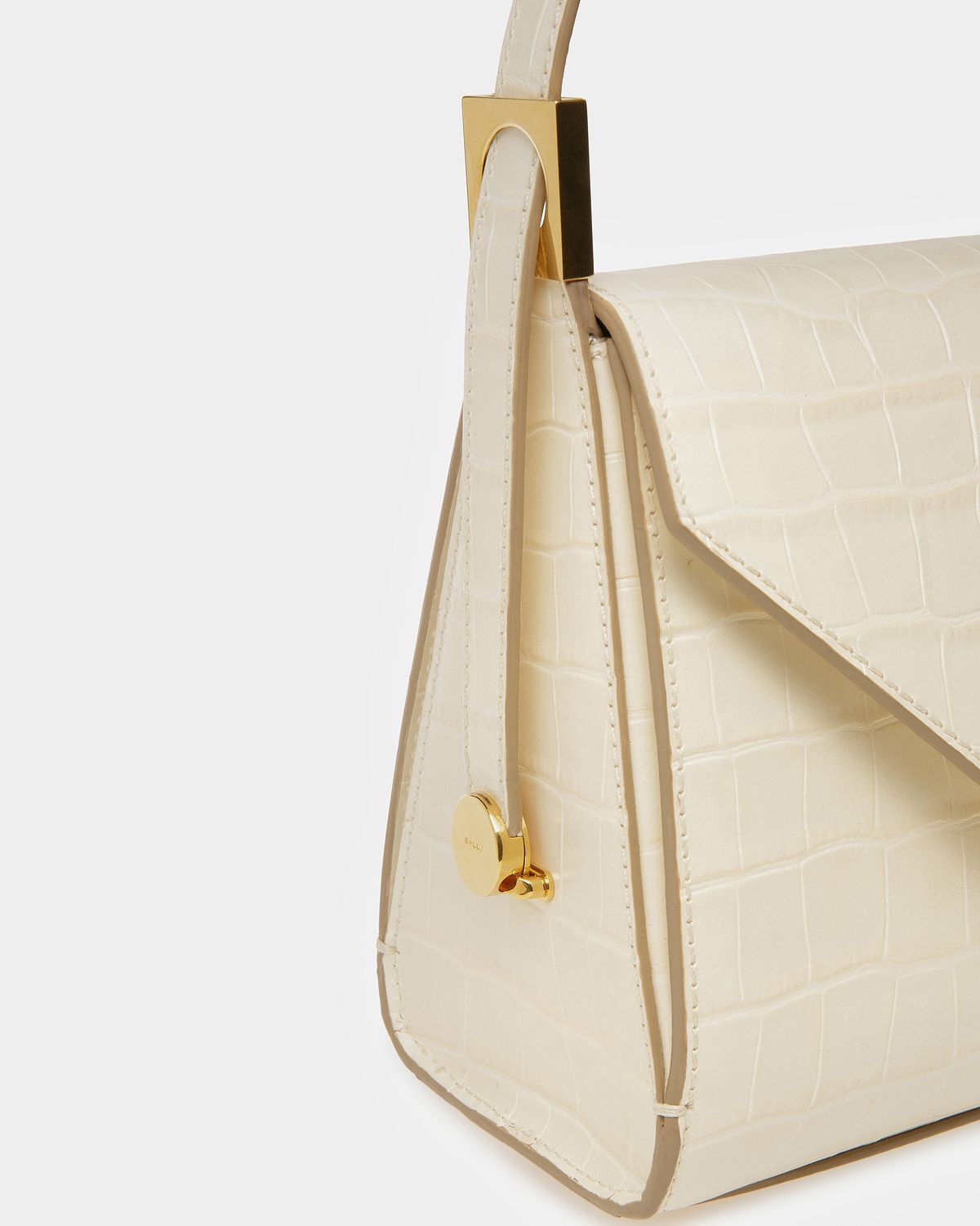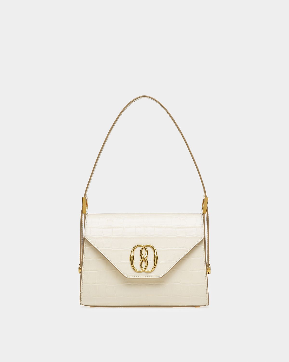 Bally 自 2023 春夏將以全新推出的品牌標誌五金 Emblem 作為主角,演譯沒有時尚保存期的永恆現代風格。Emblem 包袋系列本季首推 Emblem 壓紋牛皮肩背包,鎔鑄感的巴洛克風格標誌五金與鱷魚壓紋皆呼應奢華的設計主軸;極具匠心巧思的是包身側面的五金設計,上拉或下拉其扣飾,揹帶的長短變換就在轉瞬之間!微梯形的包型配搭米白色牛皮,正式氛圍中不失優雅的女人味,格外適合以摩登的個人風格駕馭職場的她。