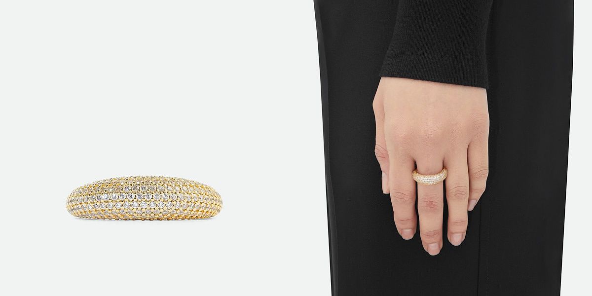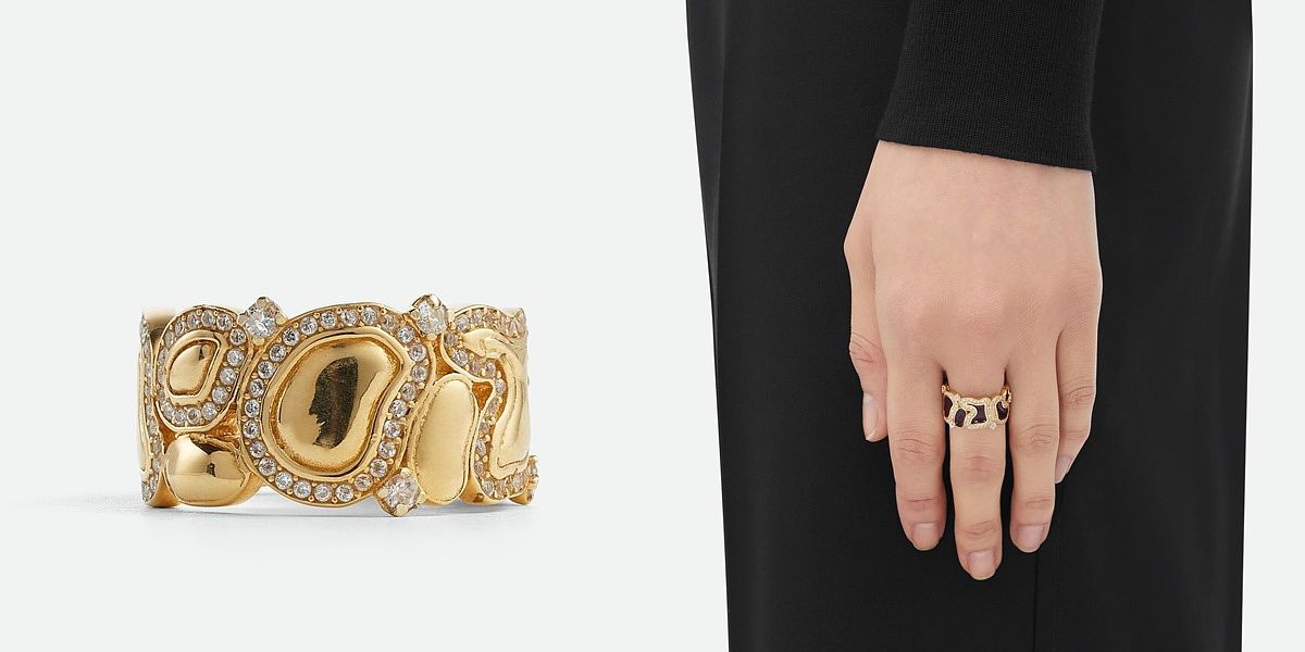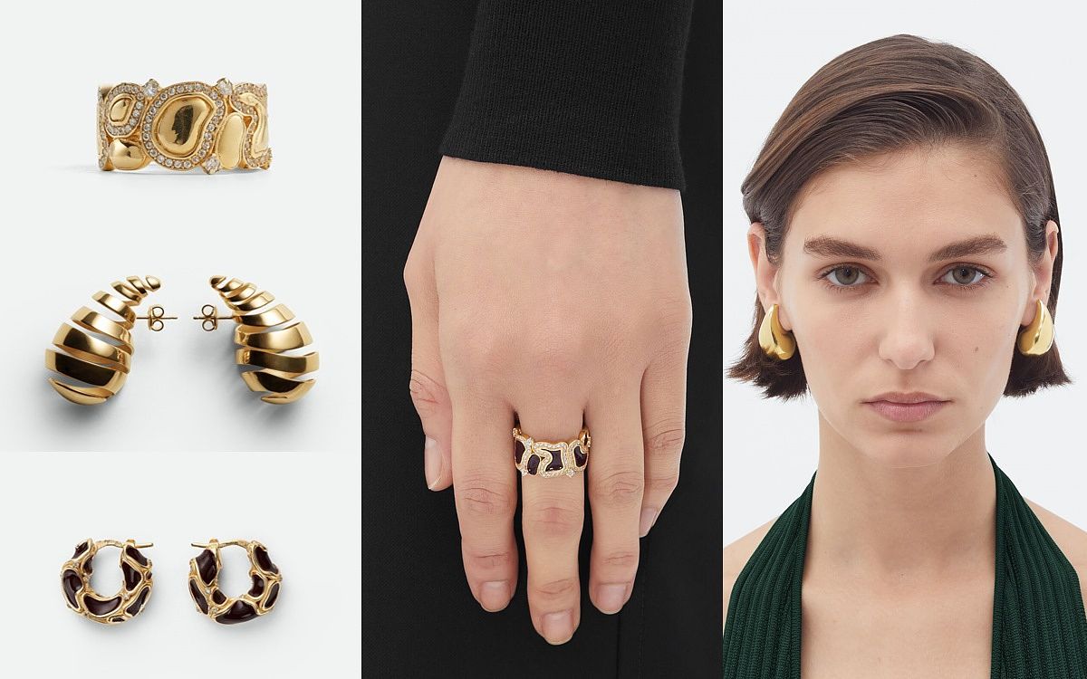 Bottega Veneta 以經典的編織混合當代風格,重新創造出極具識別性的包款,無論肩背或是手提,皆可體現出非凡的獨有風貌。配飾部分更以純銀鍍金搭配上各式鋯石,打造出富有流動及工藝之感的作品,點亮整體視覺。