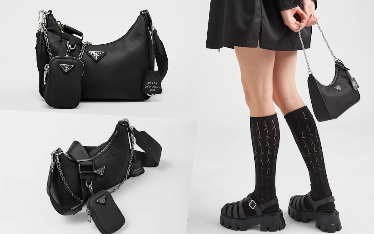 Prada三合一尼龍包絕對是多通能包款中人氣熱賣的前位選手!Re-Edition 2005年復刻版掛肩袋取材自經典迷你半月形手袋,以再生尼龍縫製,綴有Saffiano皮革飾邊,備有扣於肩帶上的可拆式萬用袋,搭配寬版長背帶及短鍊條締造層次感滿分、個性隨意的休閒風格,日常可以變換多種風格搭配。
