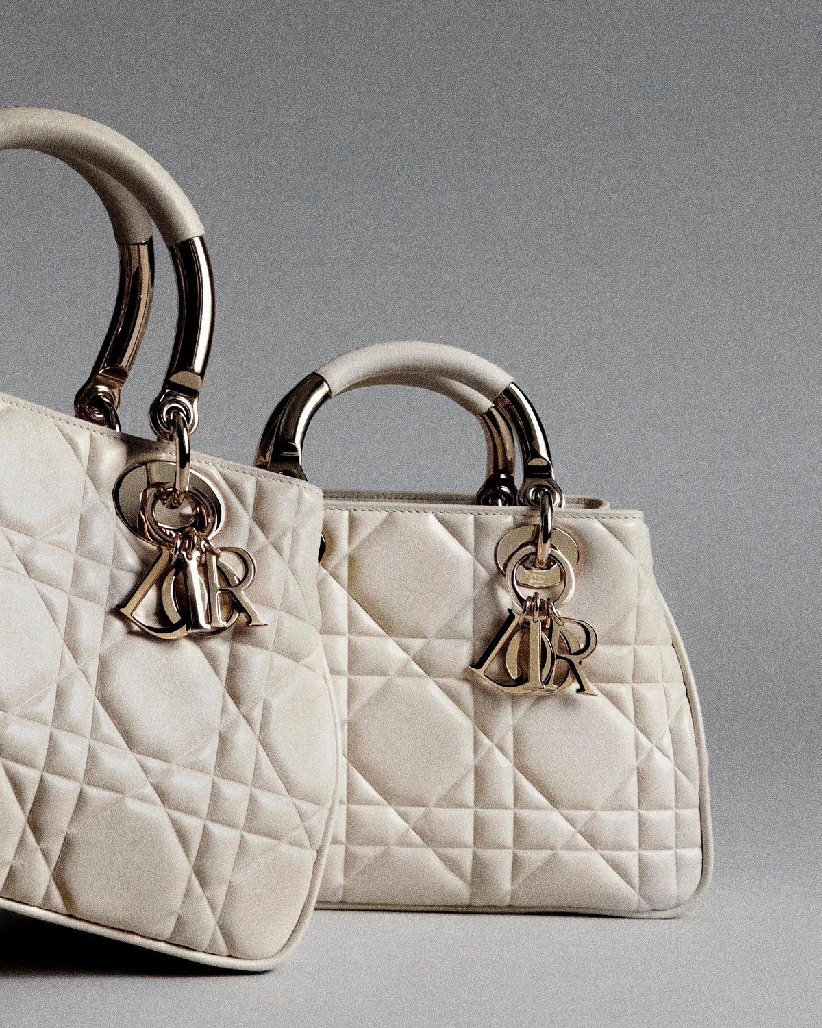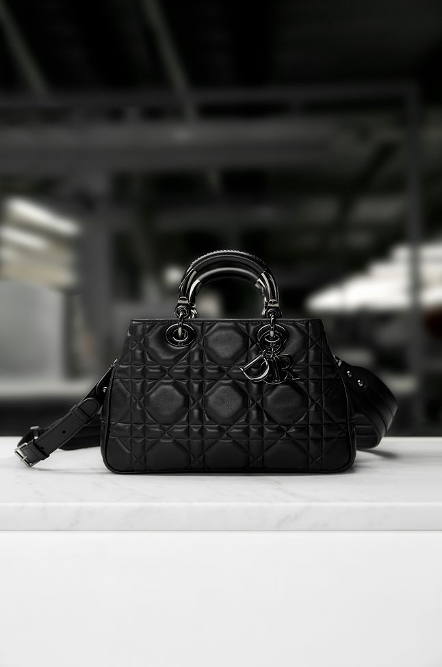 包款採用結合金屬與皮革的手柄作為精緻妝點,綴以「D. I. O. R」金屬吊飾,令人聯想到迪奧先生的幸運飾物,呈獻Lady Dior包款極具代表性與辨識度的經典設計。