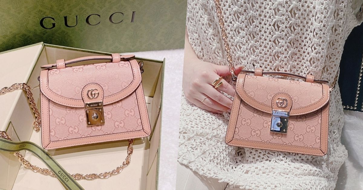 Gucci經典老花包出新色!超夢幻「寶寶粉」鍊帶郵差小包超可愛,全新玫瑰金鍊條太美、官網價格直接看!