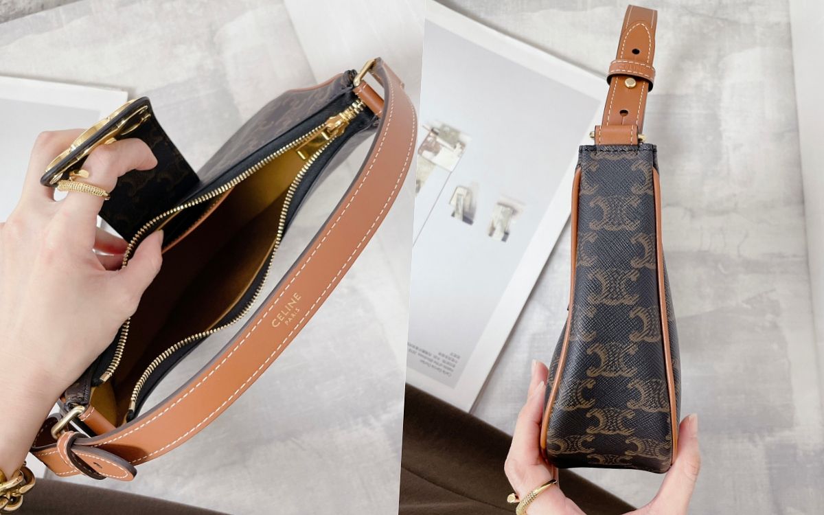 CELINE凱旋門已經成為2023最熱門的精品符號,品牌系列手袋只要壓上Triomphe標誌就成為銷售保證,極具識別度又復古的精緻質感令人醉心。這款AVA包款延續過去腋下包的經典外型,翻蓋處則用金屬凱旋門標誌巧妙點睛一筆,讓這款手袋一揹上就成為焦點所在。