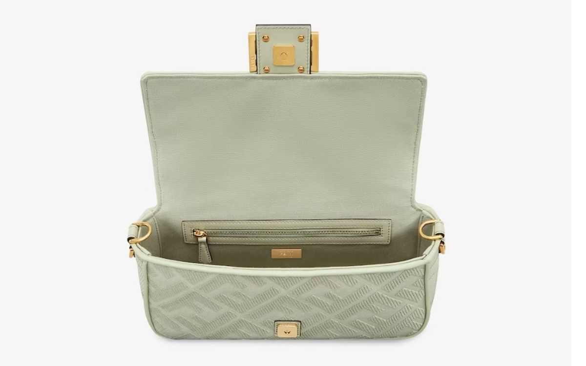 充滿春夏氣息的淺綠色帆布Baguette包款,搭配同色系刺繡的FF經典標誌,是一款既率性又經典溫柔的包款,包身更搭配可拆卸的手柄和肩帶,讓包款擁有多種攜帶方式、在容量配置上也能滿足日常需求。