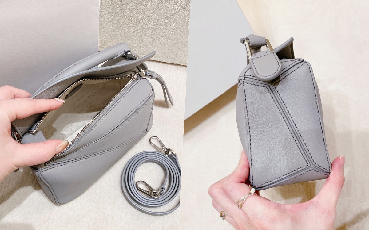極受歡迎的LOEWE PUZZLE手袋「奶油灰」新色太美了!迷霧般的淺灰帶點軟奶油的療癒感,既優雅又知性的高級質感真的無法不心動,且這顆迷你PUZZLE的容量更是滿分,無論手機、錢包、耳機、各式小物都能直接放好放滿,同時附有一條皮革細背帶,日常攜帶能隨意變換方式十分方便!