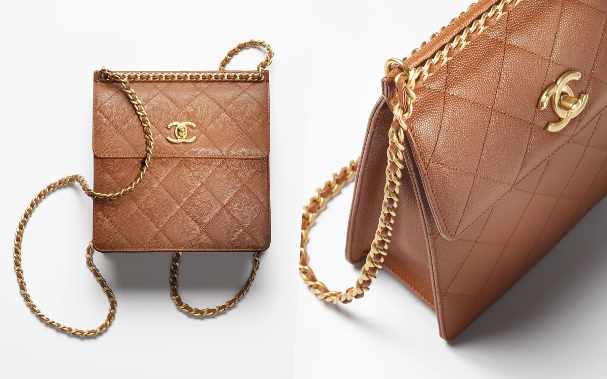 不知道大家還記不記得上一季香奈兒推出的後揹小香書包,當時Black Pink的Jennie私服著用曝光後,更掀起一陣搶購狂潮,而此次Chanel最新登場的2022/23 métiers d’art 工坊系列中也有一顆後背包,以溫暖細膩的焦糖色粒紋小牛皮搭配經典菱格紋,縈繞著復古典雅又雋永的氣息,方正長形的包款揹上身實在是太時髦!沒買到小香漆皮後背包的人別再錯過這款~