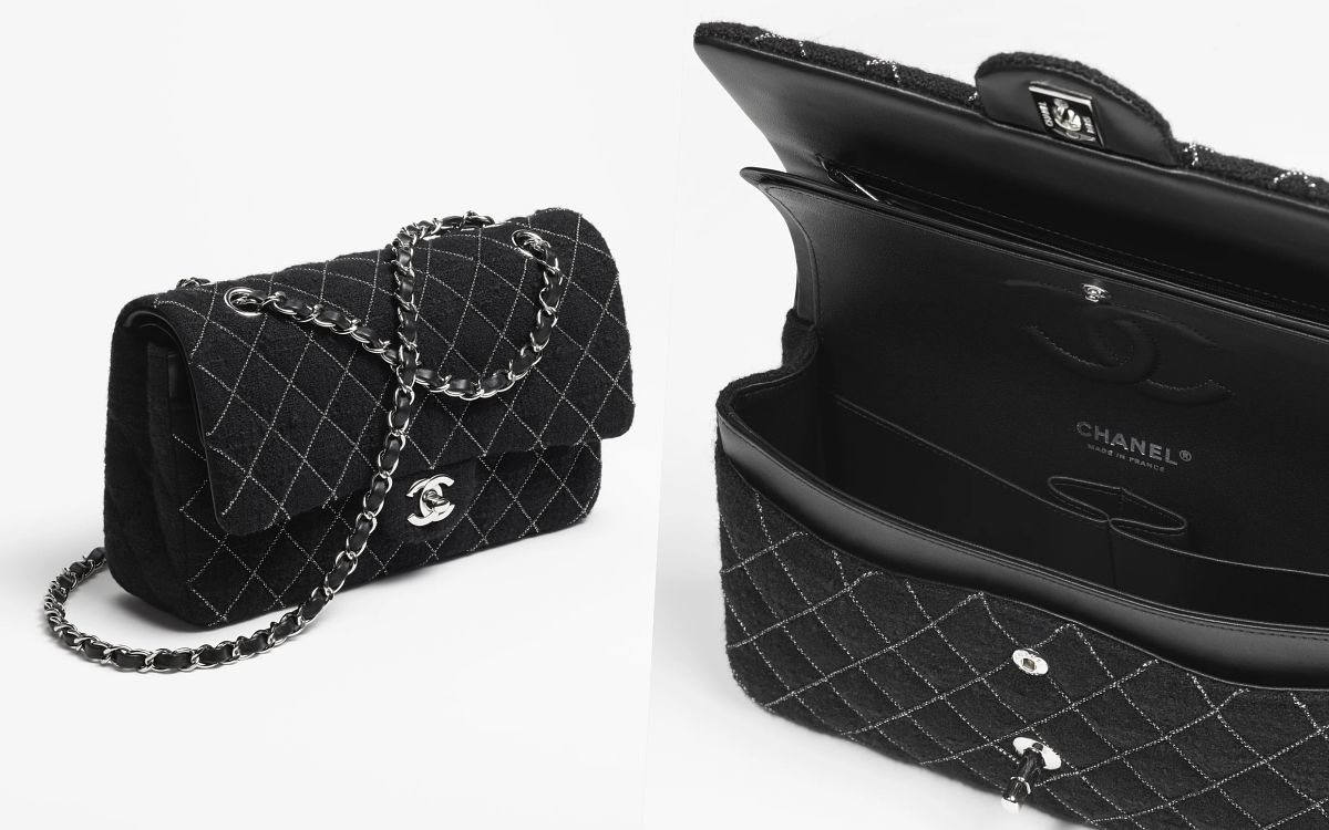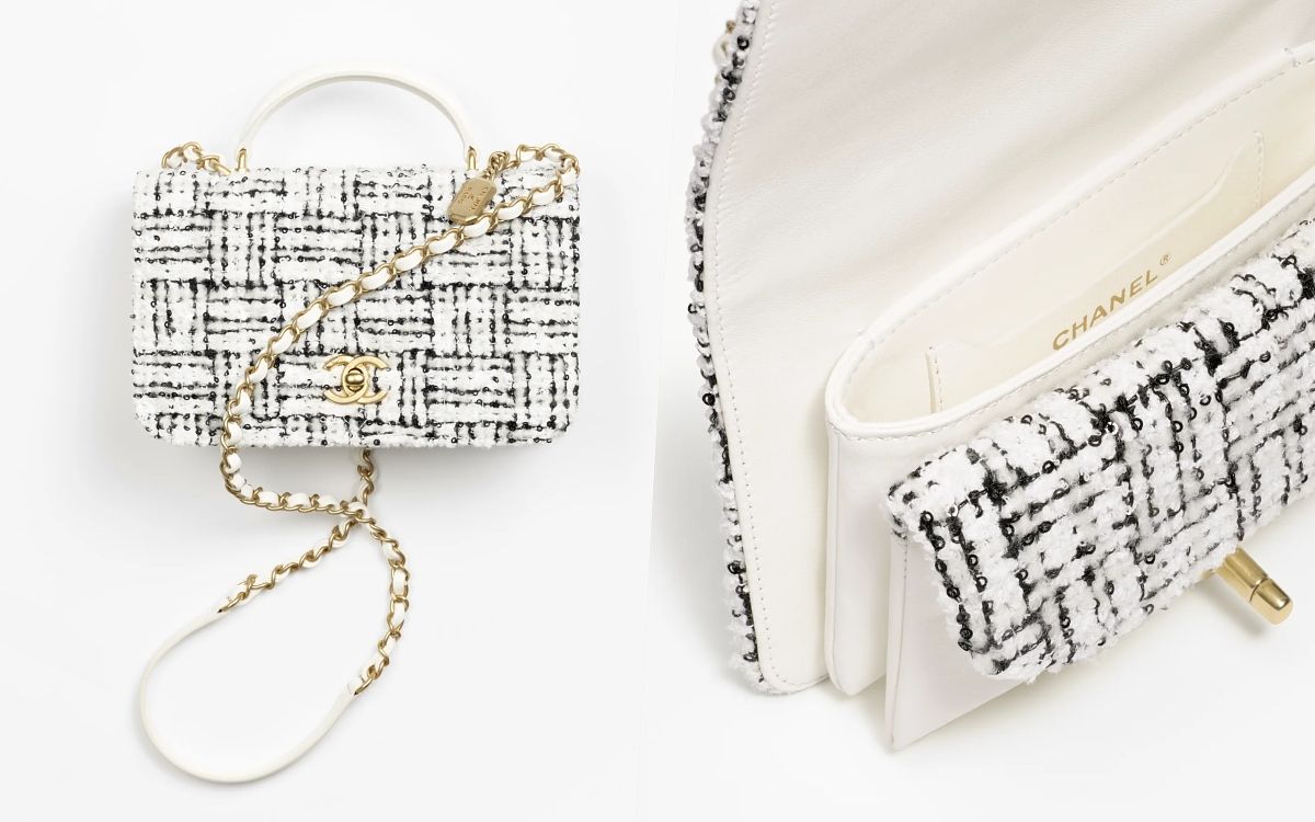斜紋軟呢布料絕對是CHANEL經典元素之一,大家可能更熟悉它被使用在「小香風外套」或「套裝」上,也在近年來時尚圈掀起一陣風潮,而今年秋冬這股潮流捲向包款的設計,雖不是首創之舉,但依舊營造出令人難以抗拒的香奈兒魅力,尤其和提把口蓋包結合更顯精緻優雅的質感了,甚至比皮革款式更加值得收藏!
