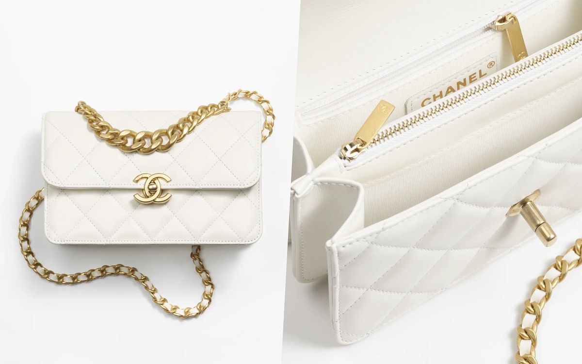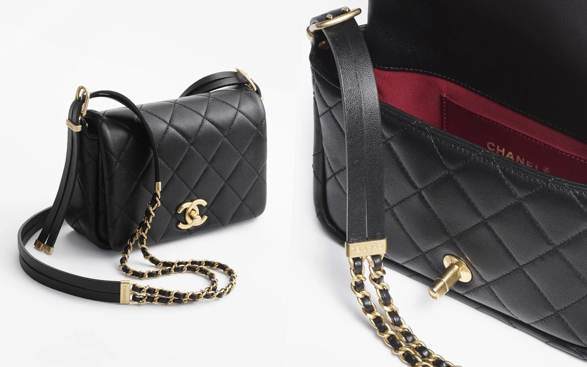 在此次秋冬新系列中有一款全新包型悄悄登場,擁有著小香經典口蓋包的DNA,小羊皮溫潤澎盈的皮革和標誌菱格紋、雙C LOGO包釦翻蓋以及背後口袋設計,結合休閒感的郵差小方包型輪廓,將優雅摩登的氛圍轉換成可愛俏麗的印象,更特別的是背帶部分以兩條細鍊帶結合,保有一種線條上的錯視趣味,充滿新奇和獨特造型。