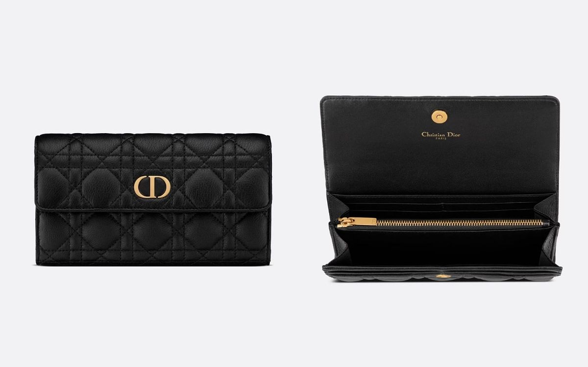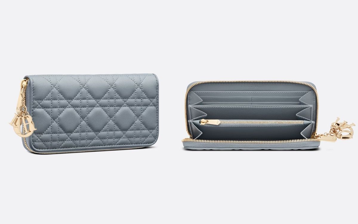Dior經典的Cannage藤格紋圖案縫線為日常實用的長夾注入優雅時尚的氣息,翻蓋綴以「CD」標誌的款式成熟且奢華,而配以可拆卸D.I.O.R.吊飾的拉鍊款則更活潑年輕,在使用上也大大增加了方便性。