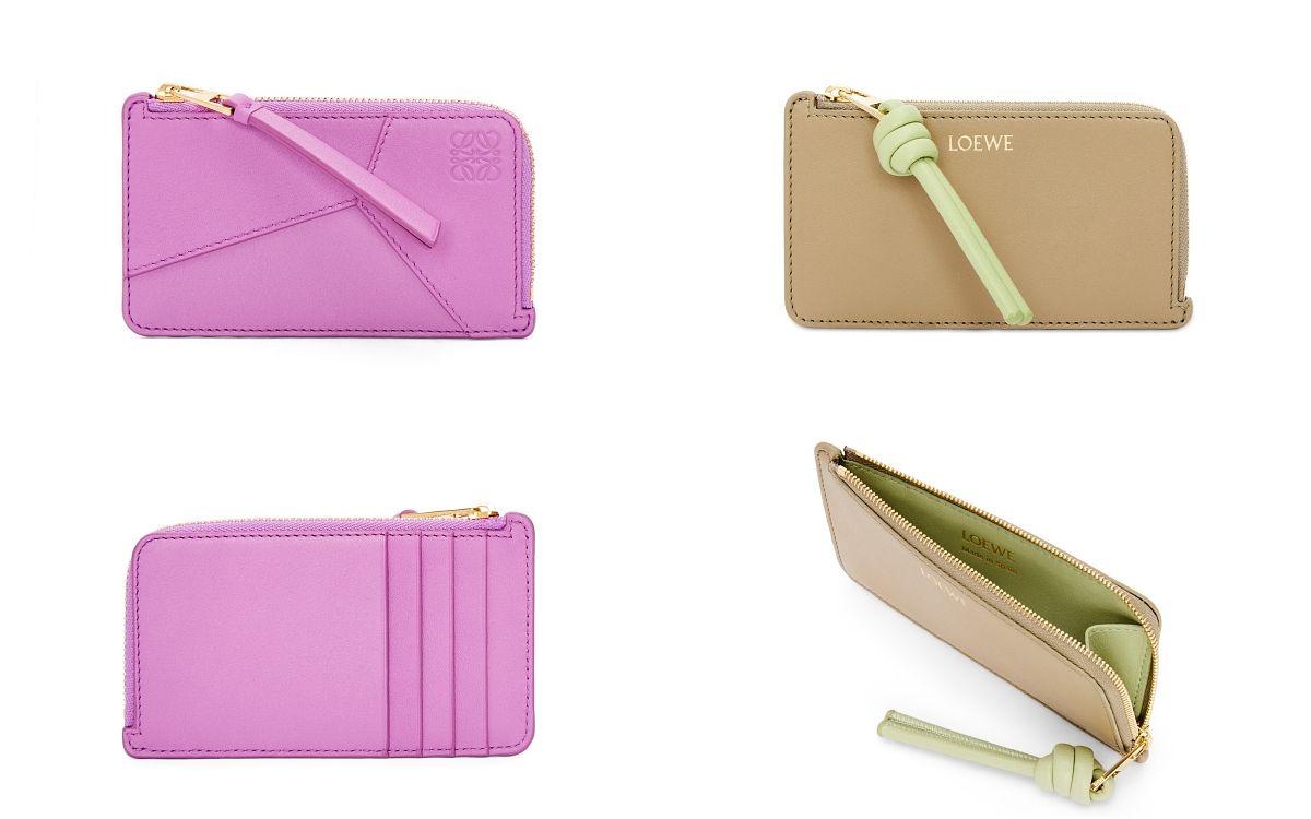 LOEWE這兩款新上架官網的零錢卡夾包,前者靈感源自標誌性的Puzzle包款,採用獨特的幾何圖案,搭配上粉嫩鮮亮的紫色真的太可愛!另外雙色搭配的Nappa小牛皮繩結零錢卡包也非常獨特有造型,兩款都是一萬多的價格很可以。