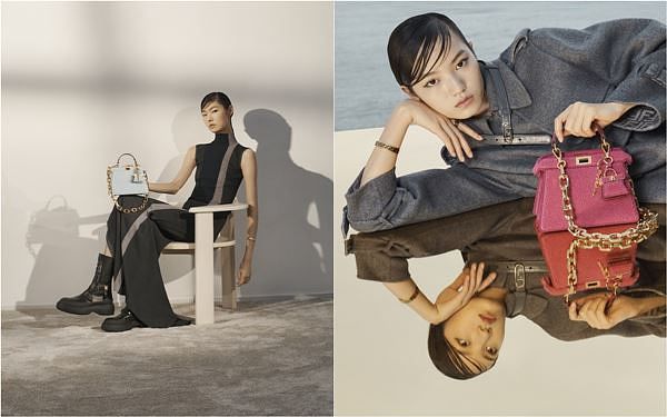 FENDI 在 2023 年秋冬系列中,將當家的 FENDI 招牌 Peekaboo 包款變成散發濃郁當代風情的限定系列主角:FENDI 運用經典手工編織工藝,重新演繹 Peekaboo ISeeU 中型和小型包款,從經典皮條變成翻羊毛材質。在不退流行的中性色調基礎上,雙色款增添了細膩精緻的灰色調,像是白色搭配灰褐色、暖色系的白蘭地琥珀色搭配灰褐色,以及深棕色搭配淺藍色,而明亮的粉色調則是採用同色系的手工編織工藝。Peekaboo ISeeU Petite 款式沿用相同的配色方式,又加入了純色的翻羊毛材質包款。搭配包身的翻羊毛材質肩帶,讓 Peekaboo 包款的整體外觀更顯華美,而 Nano Peekaboo 吊飾和金色鏈條肩帶可隨意混搭,成為包身上的點睛之筆。