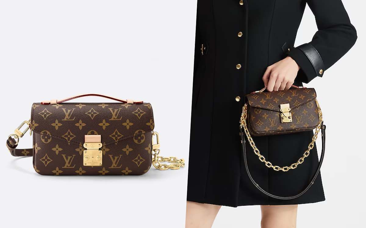 LV郵差包可說是一推出就轟動整個時尚圈,立馬成為品牌長期搶手的爆紅缺貨包款,而在今年度郵差包改變了包型設計,採用標誌性Monogram帆布製作的Pochette Métis East West手袋綴有天然牛皮飾邊和S-lock鎖扣元素,完美糅合經典品牌格調和金色鏈帶等嶄新現代細節,也可作時尚的短肩背攜帶,整體容量承襲原本設計非常足夠容納日常物品,有預算的人入手準沒錯。