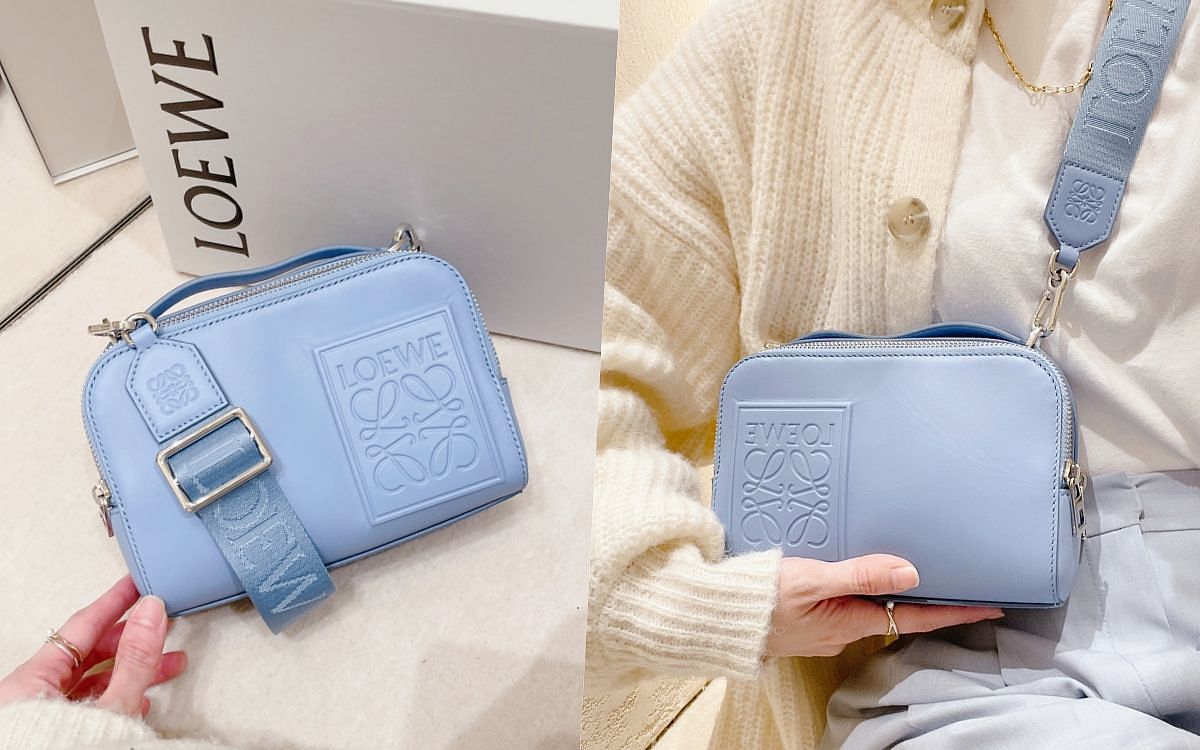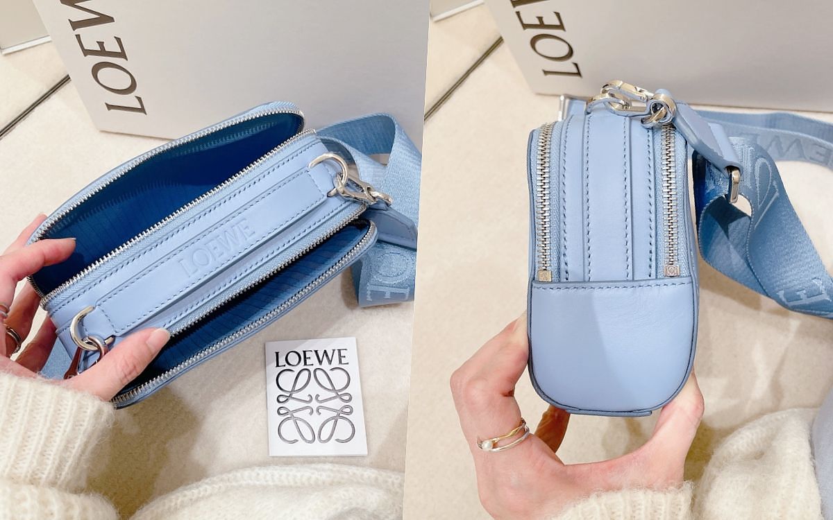 LOEWE這款相機包真的太值得入手!以四萬初的價格能擁有完全是天菜~由手感溫潤的小牛皮製作而成,包型設計簡約流暢、且包身壓印LOEWE經典Anagram壓花貼片,在細節處藏有品牌精緻的工藝與代表元素,且容量上這款相機包分為前後兩個拉鍊夾層,空間充足又能分配放置物品,不只日常實用性滿分,背帶的部分更能直接擁有通常要額外購買的緹花寬肩揹帶,CP超級高!