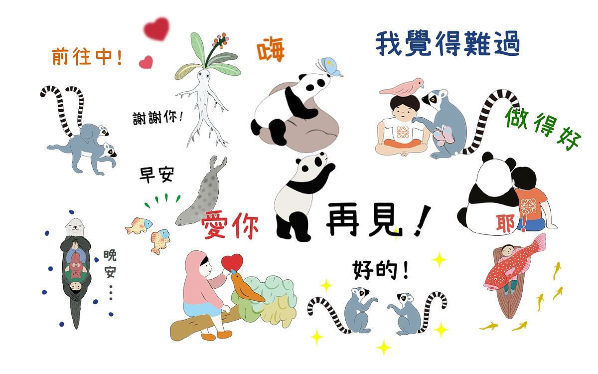 為歡慶上市,推出 16 款活潑靈動的 LINE 主題貼圖,以他們筆下的角色為主軸,如熊貓、狐猴、企鵝、熊及曼德拉草等,融合細膩筆觸及飽和色彩,設計出充滿品牌感染力的動態貼圖,並囊括了各式日常用語及暖人祝福,包括:好的、愛你、晚安及再見等。鮮明色澤帶來濃烈的視覺效果,描繪出品牌的生動活力及精湛細節,讓每款貼圖成為最搶眼的焦點。