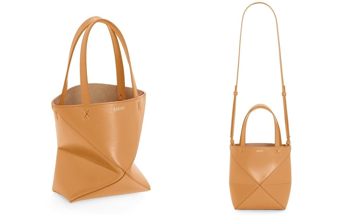LOEWE全新包款Puzzle折疊托特包從經典系列手袋的幾何線條汲取靈感,以富含幾何建築美感的嵌條重新詮釋,可以摺疊成平面正方型,且只需一個簡單動作,即可伸展為立體包袋造型,在看似簡單樸素的包袋中隱藏著無限的變化與趣味細節,迷你尺寸具長背帶又擁有寬敞空間,不管休閒或上班都適合使用。