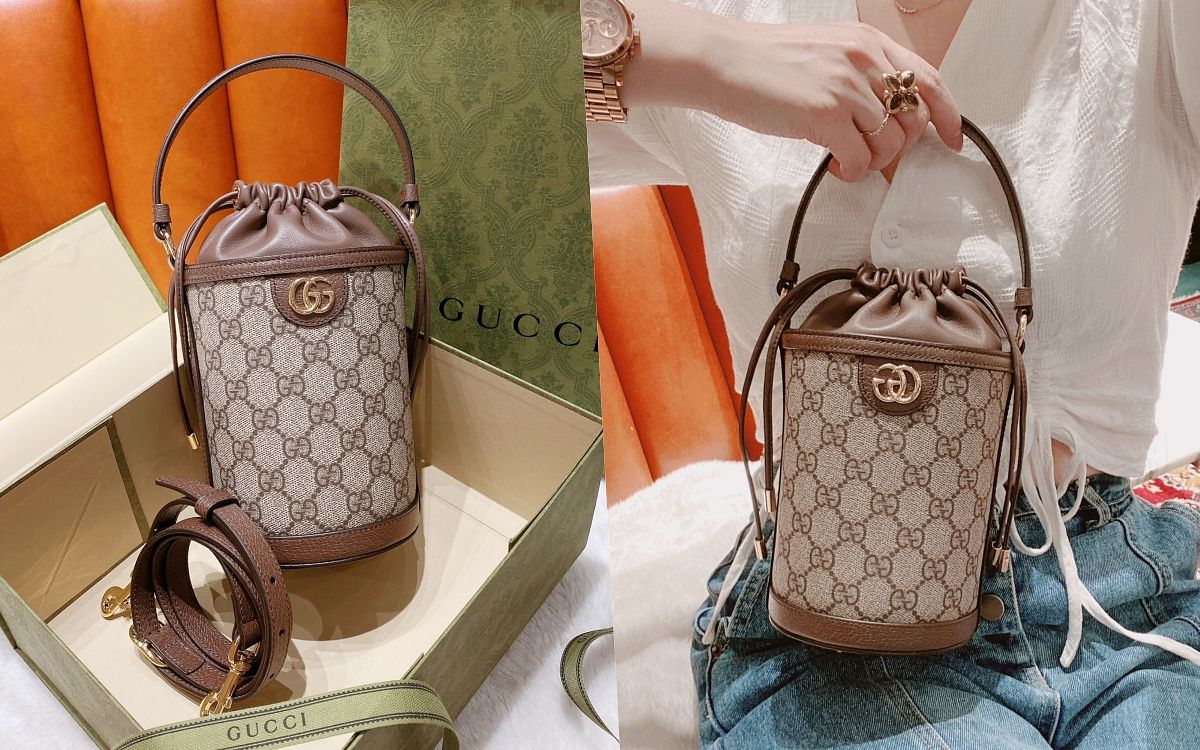 品牌最經典的Ophidia系列以典雅復古的GG老花圖騰展現了品牌低調華麗的氛圍及精緻雋永的實用風格,圓筒狀的手袋款式搭配束口綁繩設計,大大提升了日常收納及攜帶小物的需求,同時將優雅俏麗的手提把和休閒日常的長背帶融於一體,靈活締造多種揹用攜帶方式,且皮革滾邊和標誌性雙G金屬飾件都為這款迷你水桶包注入不凡魅力。