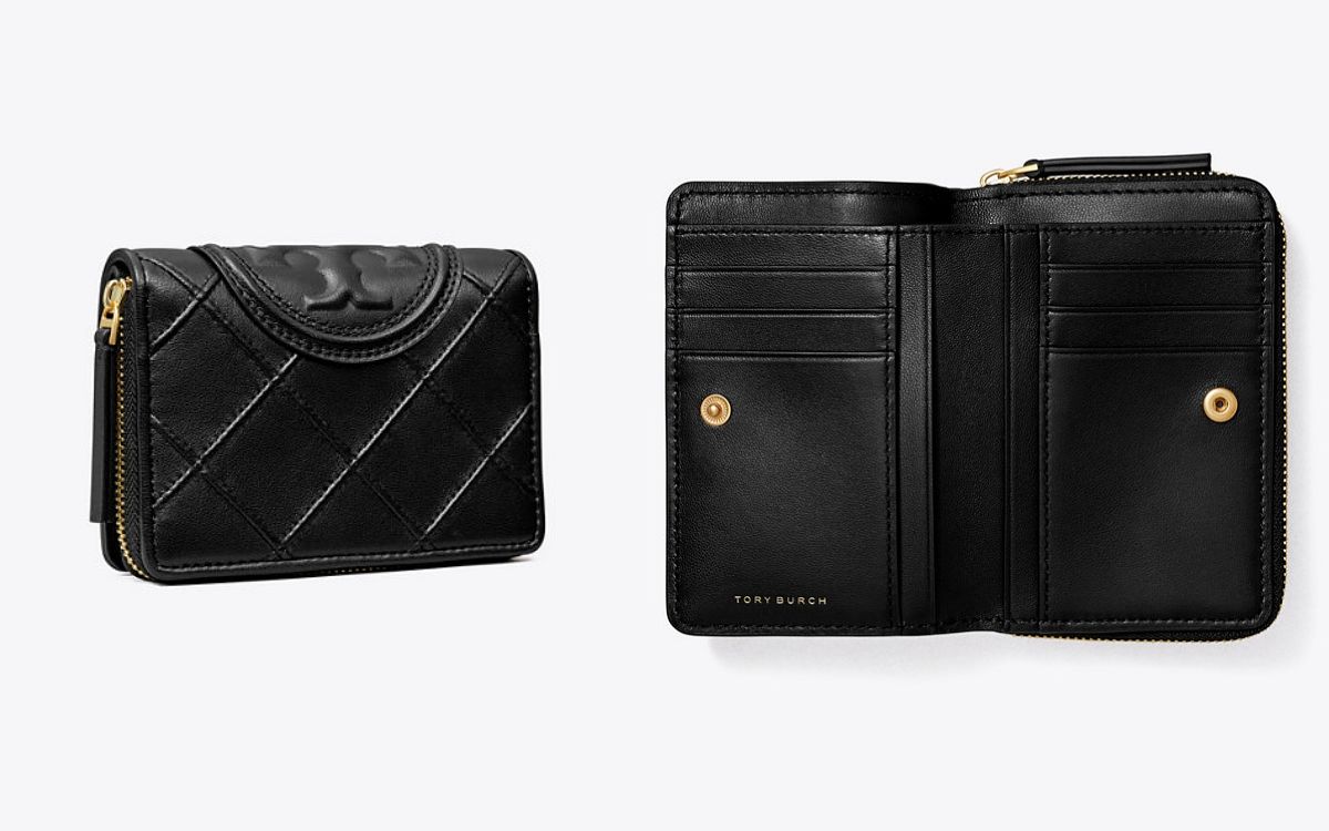 Tory Burch這款Fleming Soft雙摺錢包採用了最柔軟的皮革製成,配有超大菱形格紋紋路和品牌經典LOGO壓花bombe Double,在黑色皮革中盡顯低調奢華魅力,不過份搶眼卻擁有存在感,且尺寸完美適合放置在日常迷你小包中,皮夾也設有多個隔層很實用。