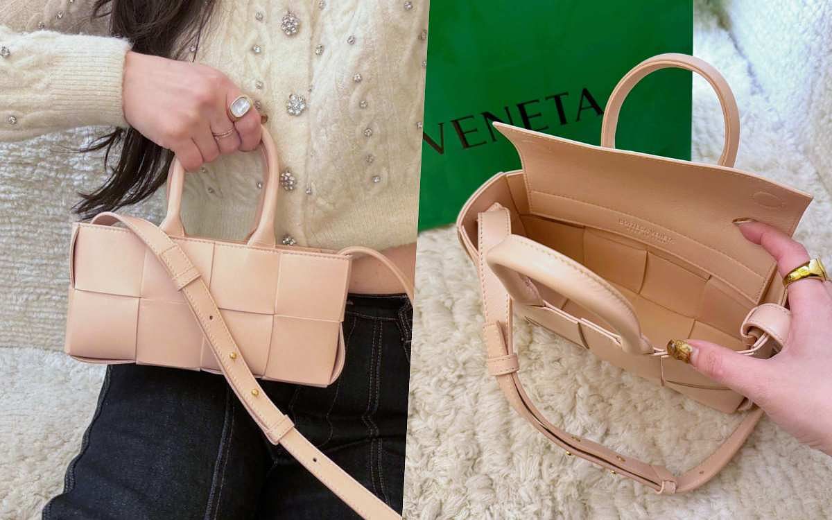 大塊方格編織的極簡風格非常受到年輕族群們的喜愛,既簡單俐落又不失設計感,品牌經典Arco系列的Mini Tote包型將托特廓形以橫向長方形來重新詮釋,幾何感更加強烈與搶眼,搭配短提把與一條可調式長背帶,實際揹起來百搭耐看又充滿造型感,尤其本季的蓮花粉更是女生們的最愛!