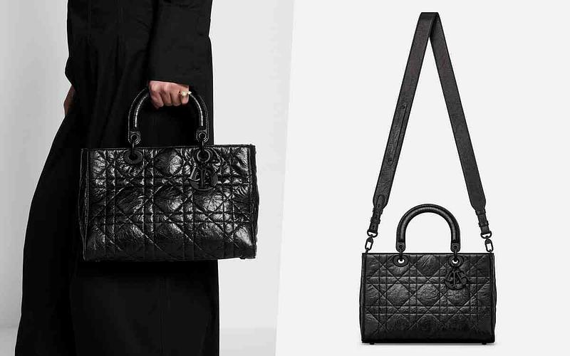 Dior於2024春夏女裝系列中,為經典Lady Dior系列包款家族迎來新成員「Lady D-Sire」,延續Lady Dior包款的建築感線條與輪廓,以黑色皺面小牛皮搭配 Macrocannage 大籐格紋縫線,展現都會圈的休閒風格,輔以同色系極啞光金屬 D.I.O.R. 吊飾為包款增添現代感,將都會時髦感與極緻優雅濃縮於設計中。