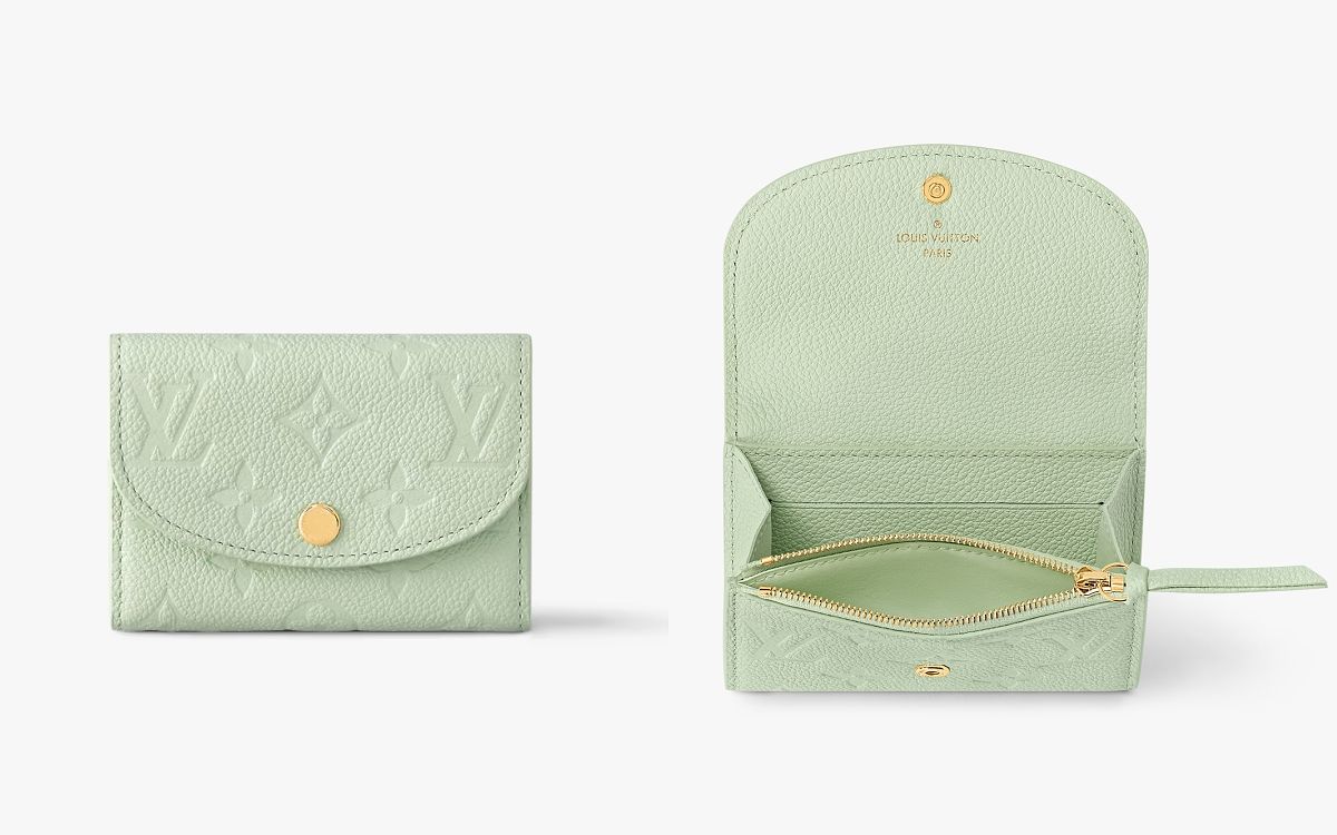 受歡迎的Rosalie零錢包以柔軟的抹茶綠粉彩色調粒面Monogram Empreinte皮革製作,為設計注入柔美氣息、率性清新又不失優雅格調。另外以藍白格Damier Azur帆布製作並綴以粉色粒面牛皮襯裡的款式更柔美、簡約知性,兩款都太喜歡、難抉擇了!