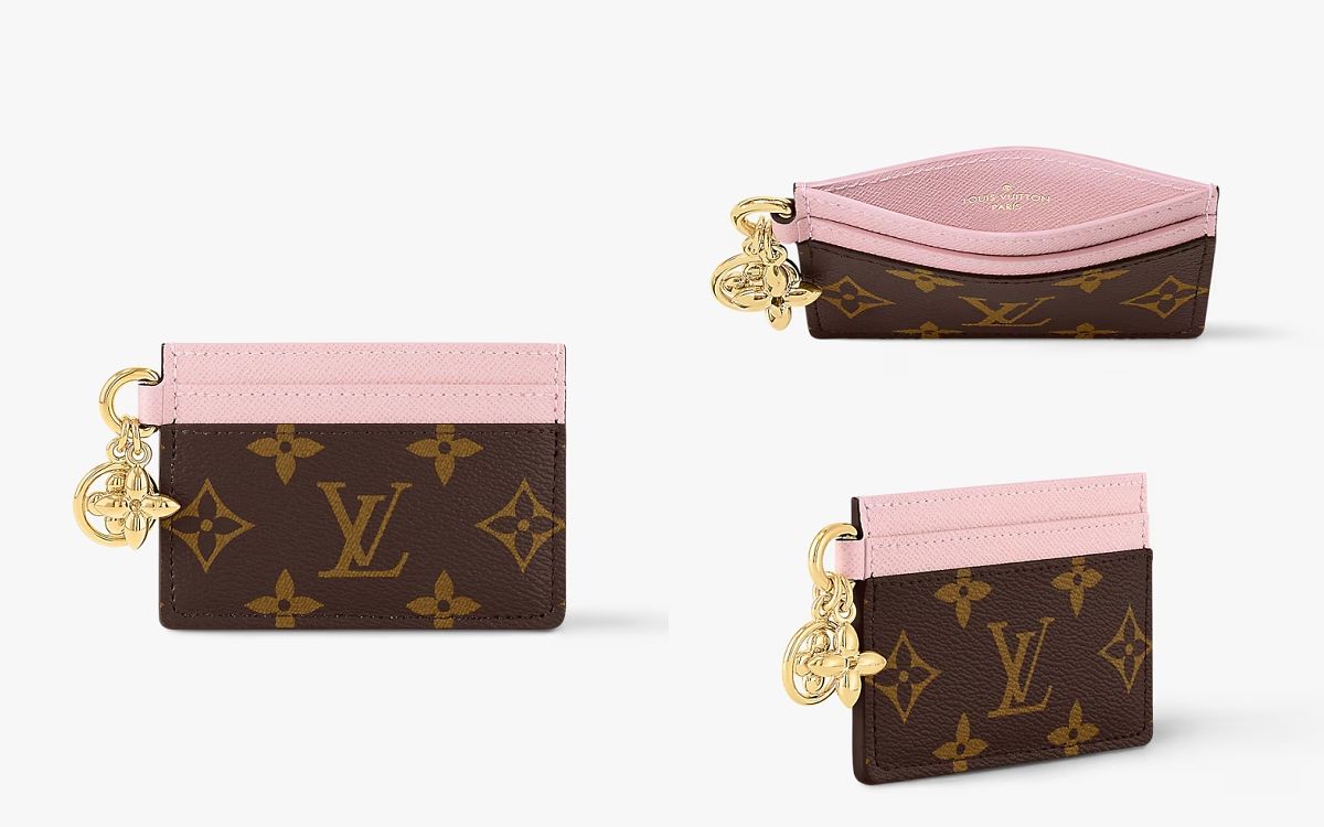 將品牌經典Monogram塗層帆布及粉嫩色配色牛皮材質結合打造,既雋永又充滿新意與亮點超吸睛,名片夾綴有兩個金色Monogram Blossom吊飾,無論是自用還送禮都超適合。