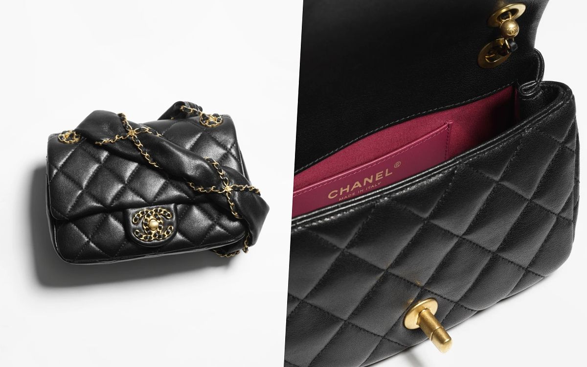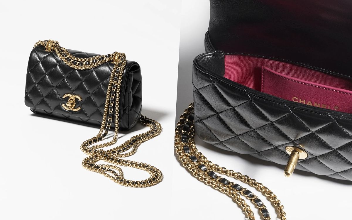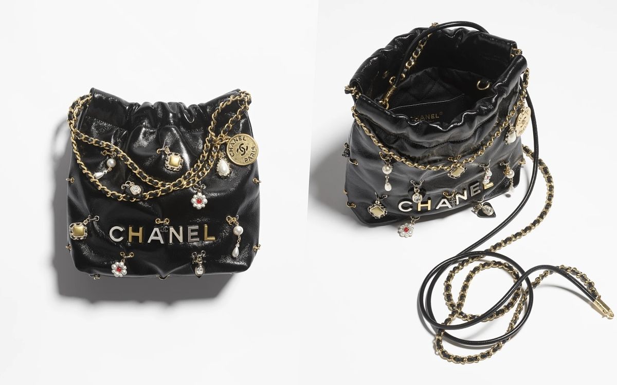 香奈兒最新的Chanel 22 mini包充滿了夢幻俏皮的元素點綴在隨性休閒的包袋上,每一個吊飾都讓包款更添獨特風格,且包面上CHANEL字樣也特別作了跳色搭配設計,實在很值得入手珍藏!另外這款新型小型流浪包粗寬版的皮穿鏈帶搭配上帶有皺褶感的亮面小羊皮菱格紋,既率性俐落又中性復古,展演出小香不一樣的風貌。