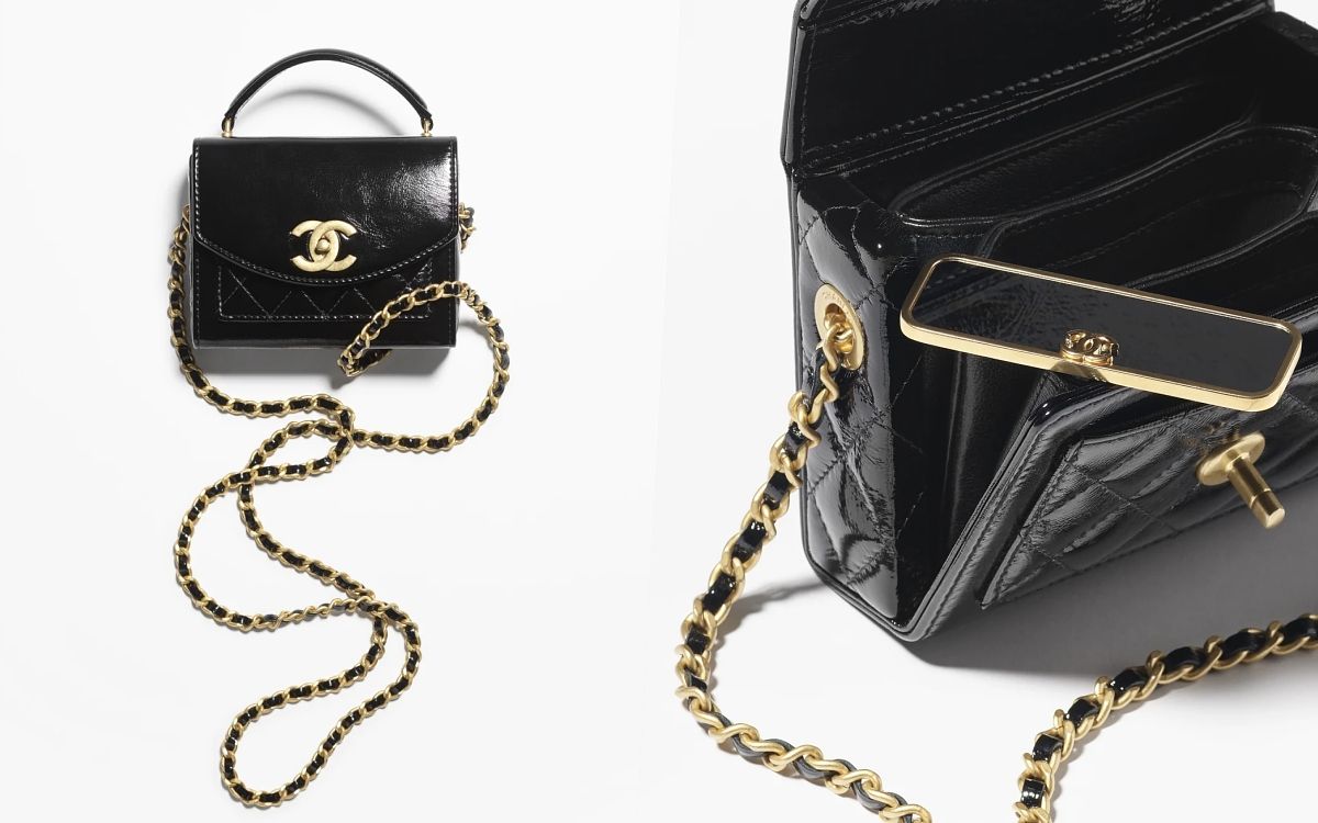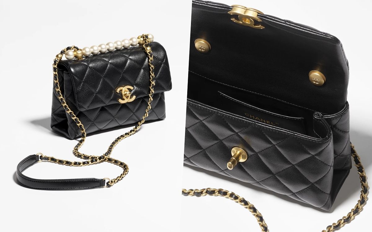 手提把口蓋包是近年來許多人入手香奈兒包的前幾名選擇,擁有著經典包款的外觀,加上提把後風格更是多變、揹法也豐富多樣,本季最新款將提把變換成珍珠飾橫桿,讓包款融入了宮廷般的華麗氣息,而另外則在皮穿鏈戴上加上多彩的水晶寶石裝飾,在日常揹用時絕對能抓住他人目光!