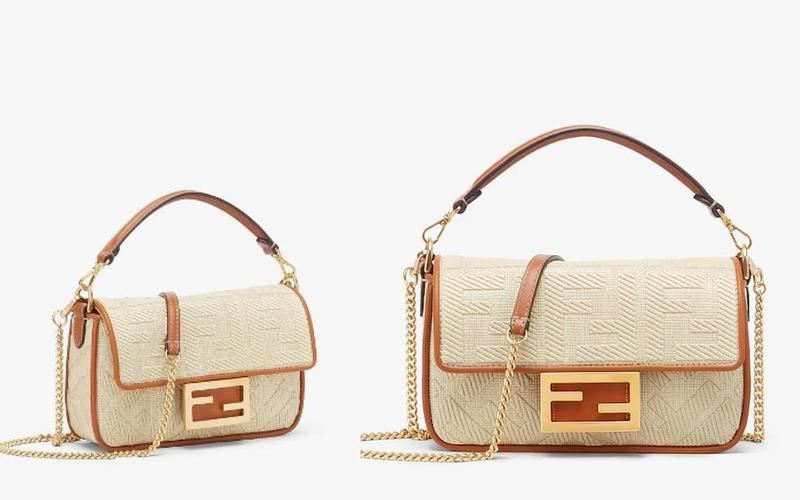 FENDI最具識別且經典的包款型號Baguette法棍包,這回以天然色稻草以隨興姿態包裹,同時包身更可見到同色系浮凸刺繡FF主題圖案的痕跡,即便是最休閒的草編包款也依然藏有品牌精緻標誌,棕色皮革鑲邊更添質感、點綴FF開合扣則將經典完美呈現。