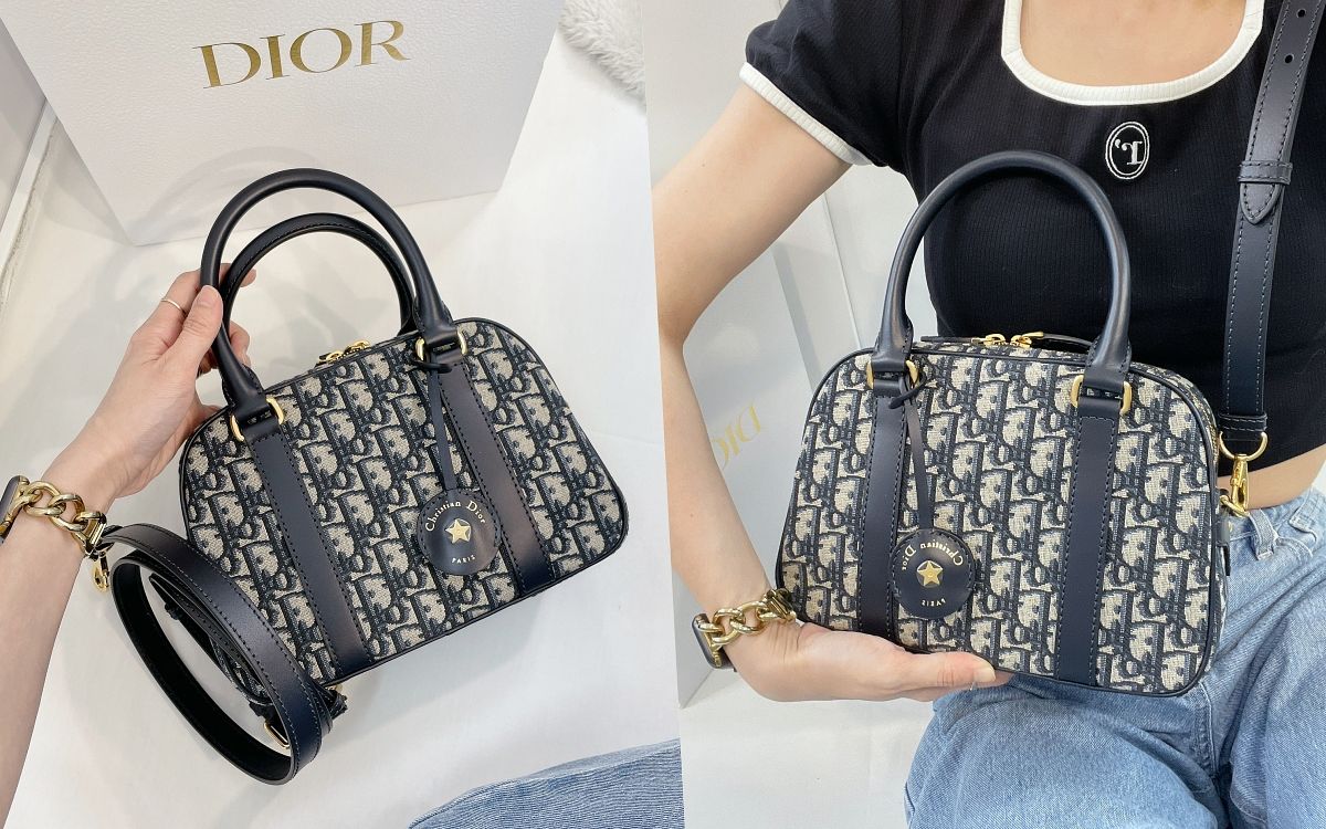 Jisoo搶先在IG亮相的Dior D-Vibe保齡球包款真的太難以抗拒了!包款以品牌最經典的藍色Oblique緹花帆布搭配精湛工法製作而成,簡約的線條呈現時髦輪廓,鐫刻Christian Dior Paris標誌的鑰匙皮套飾有金色飾面幸運星,都是品牌十足經典又具有代表性的元素,整體雋永耐磨超值得收藏,且包款收納空間極佳實用,不管在外型或者實用性上都毋庸置疑!
