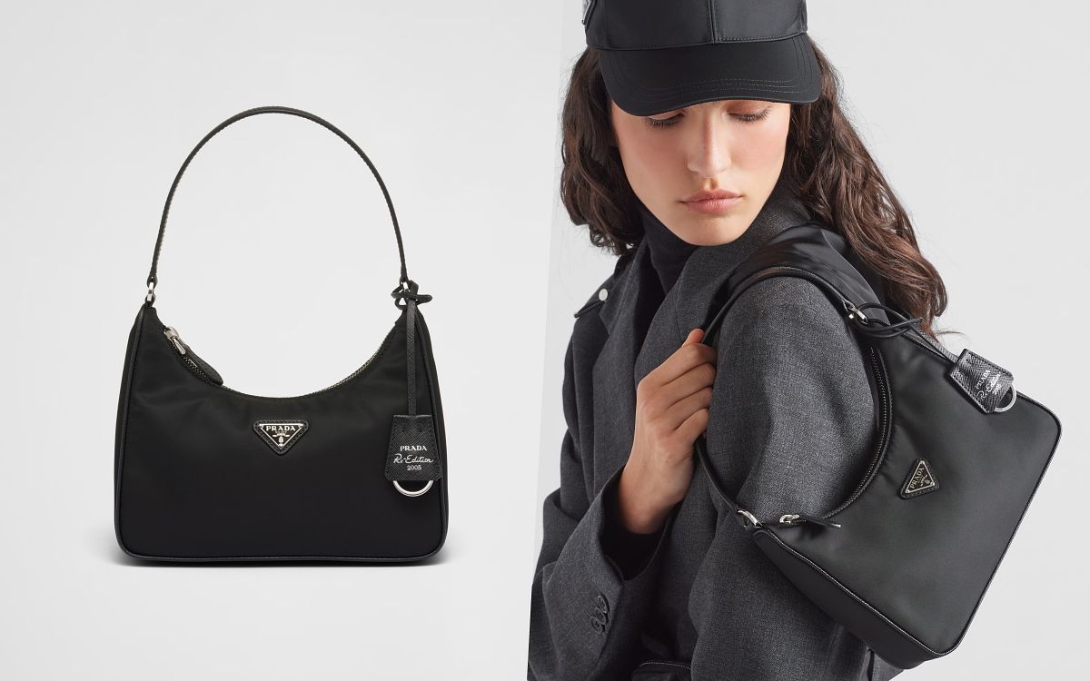 Prada Re-Edition 2005年復刻版尼龍掛肩袋可說是品牌最具收藏價值的包款之一!取材自經典迷你半月形手袋,並以再生尼龍縫製,而2005年版本則是綴有Saffiano皮革飾邊,結合了不同素材製作,營造更奢華時髦的風格,同時也讓包款的立體度更上一層樓。